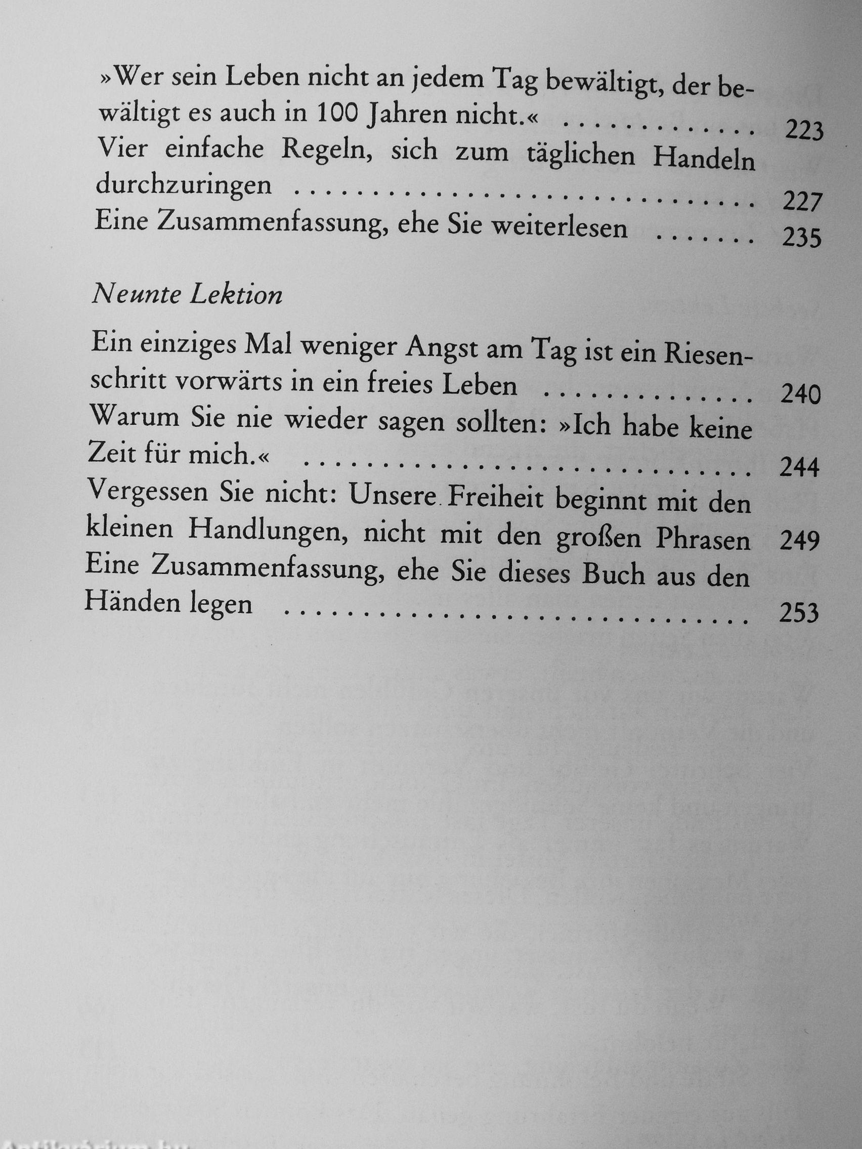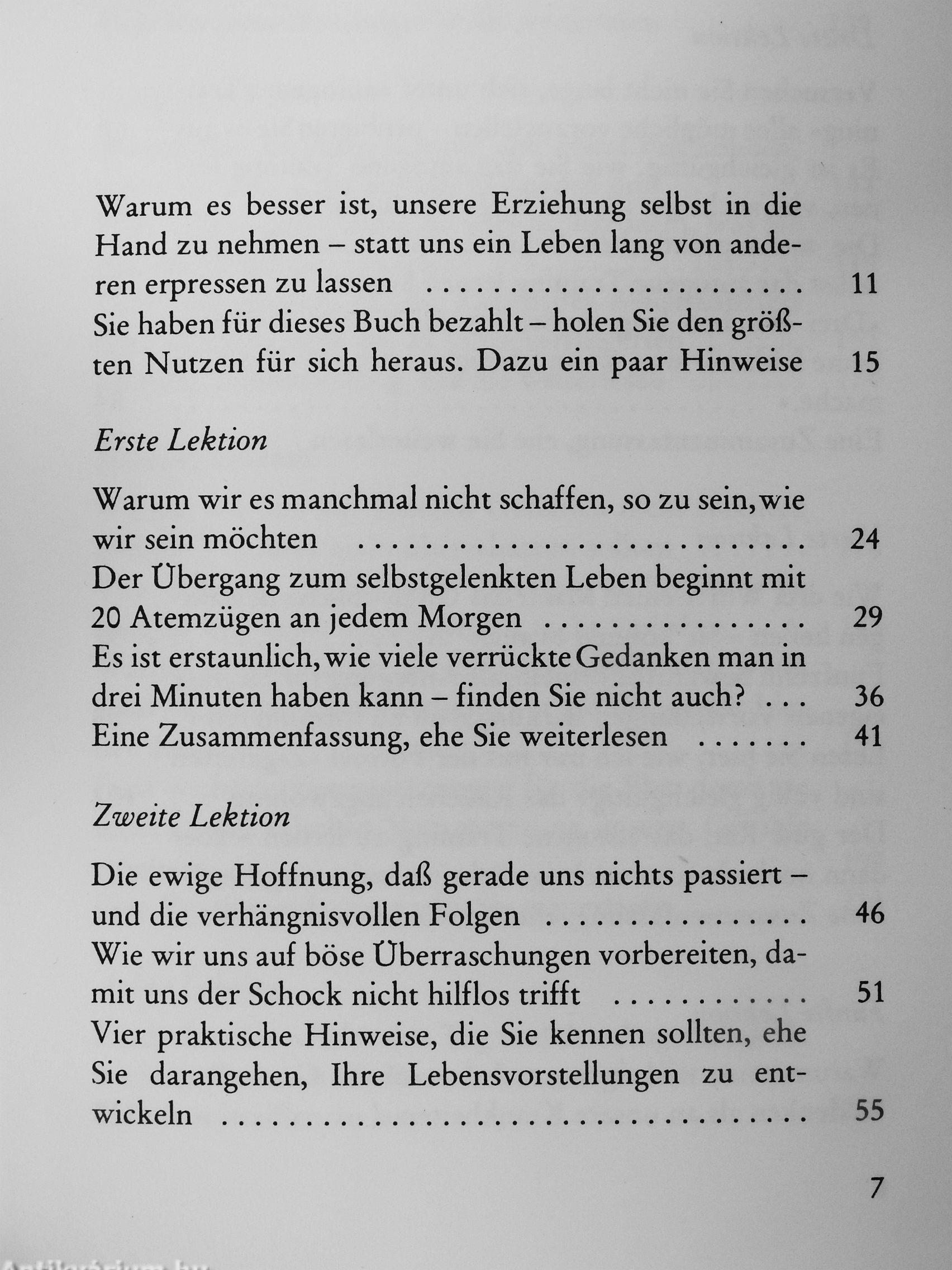 Was an diesem Buch fasziniert, ist der Bezug zum täglichen Leben. Es gibt keine abstrakte Theorie. Aber es werden unzählige Vorschläge, Beispiele, Möglichkelten und Erfahrungen für die Praxis der täglichen Selbsterziehung angeboten: