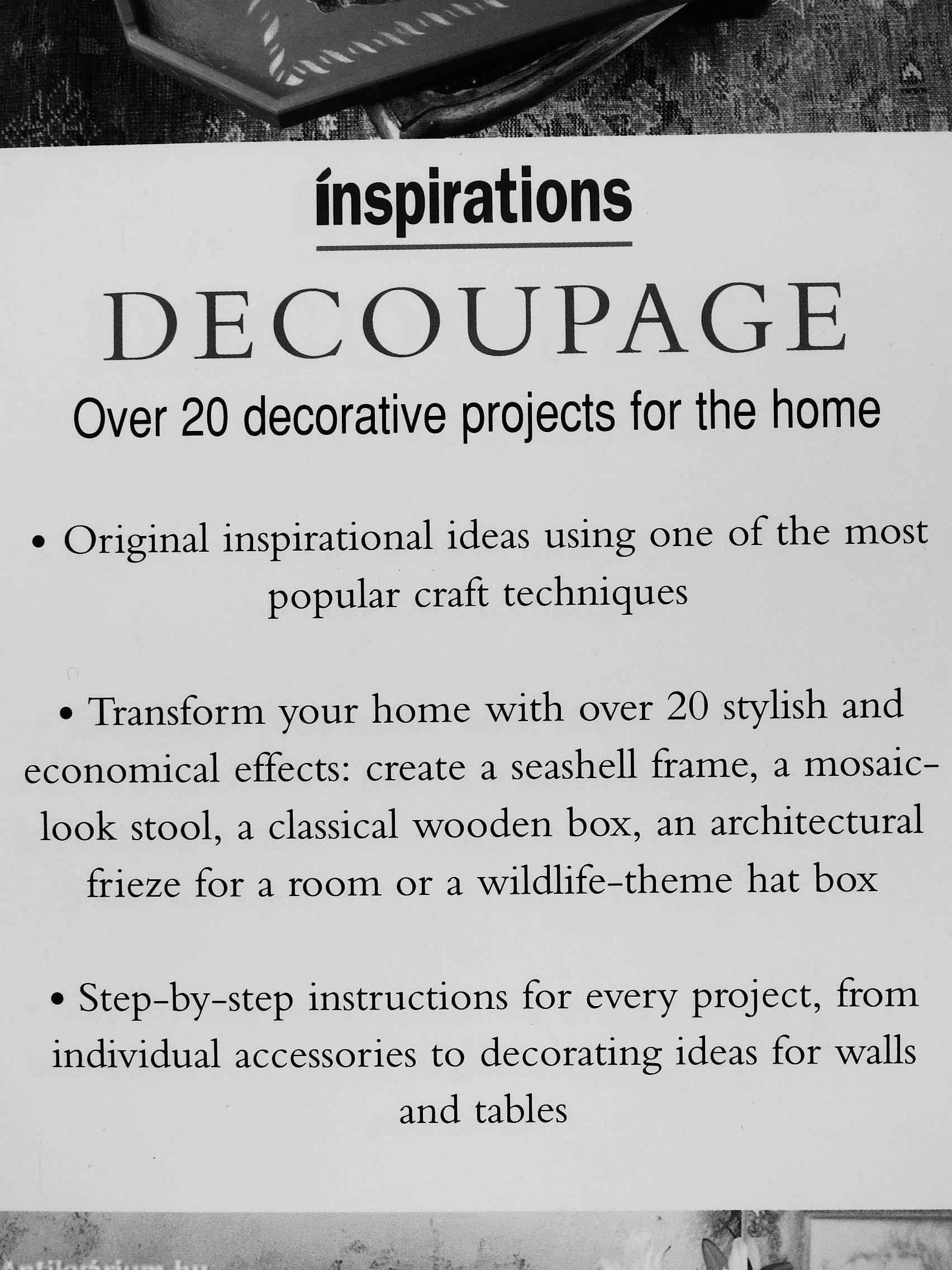 The techniques needed for decoupage are easy to learn and are explained in detail. Each project is clearly shown step-by-step, so you know exactly what you need to do at each stage. Combining practical advice with innovative designs, Decoupage is the ideal way to spice up your interiors.