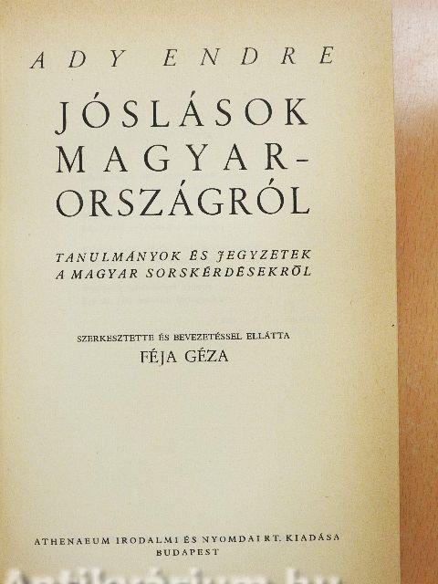 Azoknak szól ez a könyv, akik ismerik az országalapítás lázát. A magyarság ebben a lázban szenved szinte a honalapítás óta. Ez ama nem teljesedett s véget nem érő belső tevékenység, országgá s valósággá sohase nőtt »országos« álom, melynek számonkérő szemei elől lehetetlen kitérnünk, hacsak végképen ki nem szakadunk a Duna-Tisza tájához kötött magyar népi és sorsközösségből. Az országalapítás kísérleti útja pedig a honi végzetek szerint mindig a szellemi forradalom volt. A XVI-ik század prédikátorai, kik a Dózsa-lázadásnak irodalmi hangot és távlatot adtak, nem kisebb forradalmat hajtottak végre, mint Hajnóczyék (végeredményben szintén csak a lelkek terén), Rákóczi vagy pedig a XIX-ik század első felének reformnemzedéke, s forradalmi alakjai. A cél mindig az »ország« volt, a másik Magyarország, mely csupán belső síkon élt, melynek arcát csak töredékesen, félve, rejtve, irodalomba takarva lehetett napfényre hozni. Ady Endre írta utolsó versében, hogy »baljóslatú, bús nép a magyar, forradalomban élt«... Adynak kellett ezt megírnia, kiben a külső-belső magyar forradalom egész történelmi folyama felhömpölygött.