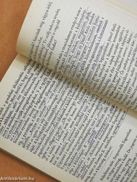 A gerinc elszíneződött, kopott. Néhány lap foltos és néhány lapon aláhúzás látható.