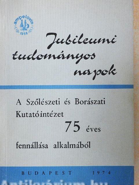 | Katona József: A Szőlészeti és Borászati Kutató Intézet 75 éves tevékenységének áttekintése | 9 |