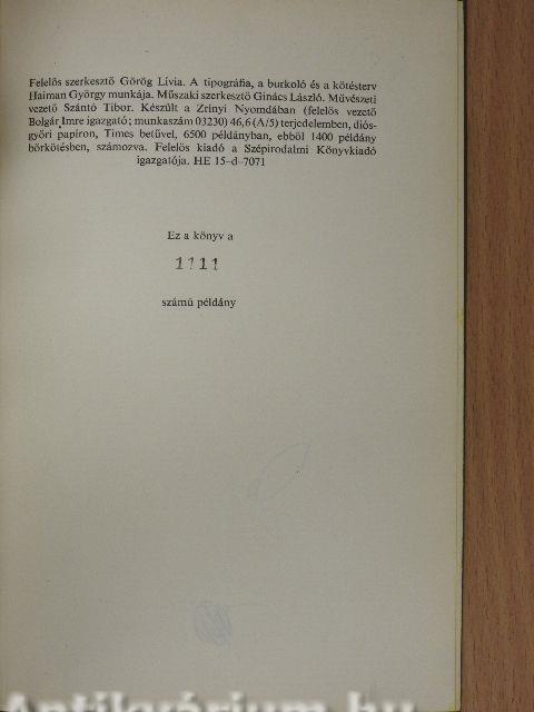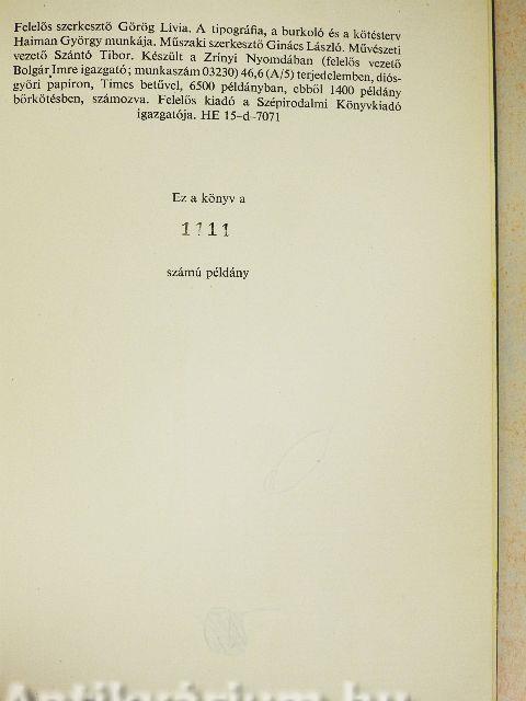 | Megjegyzés: | 1400 példányban kiadott sorszámozott kiadás. Készült a Zrínyi Nyomdában. |