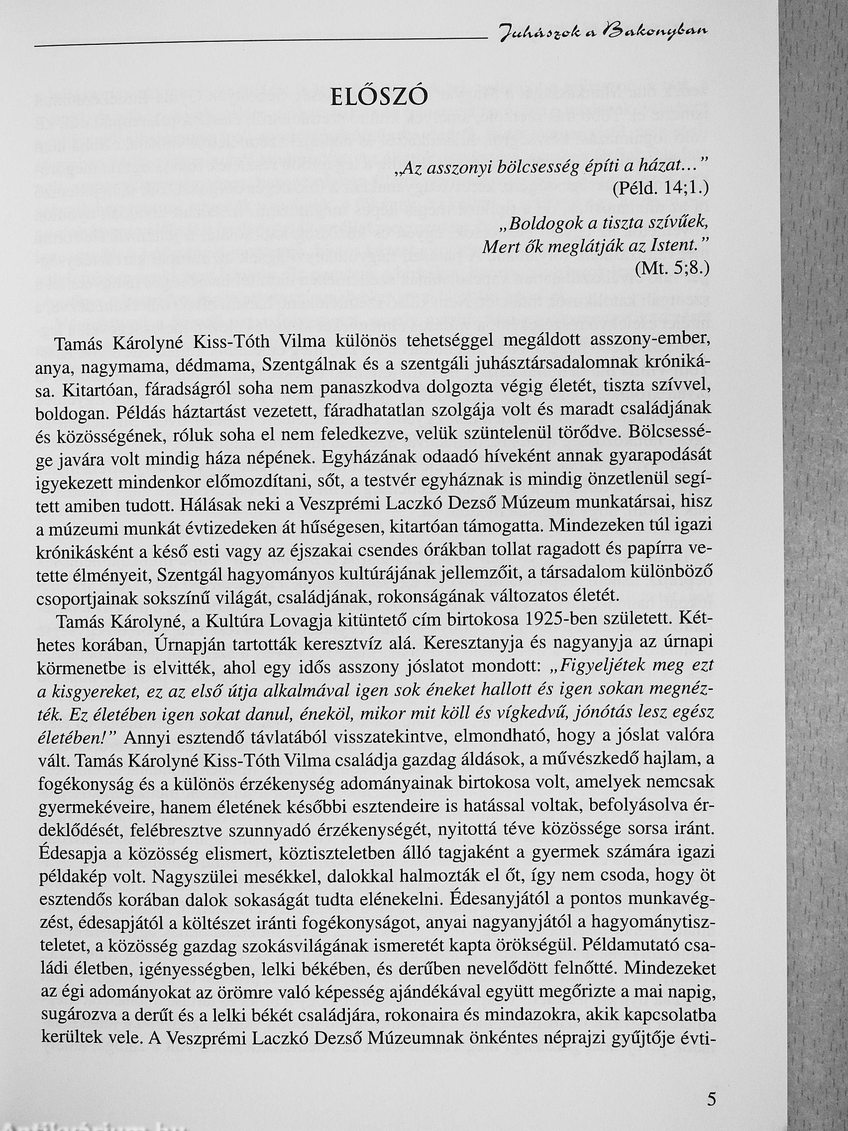 Megjegyzés: Tamás Károlyné Kiss Tóth Vilma szerző által dedikált példány. Fekete-fehér fotókkal, kottával.