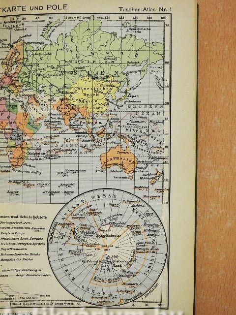 A világ zsebatlasza 26 színes rézmetszetű térképen. Mellette megtalálhatók a föld országainak leírásai, a főbb adatok feltüntetésével.
