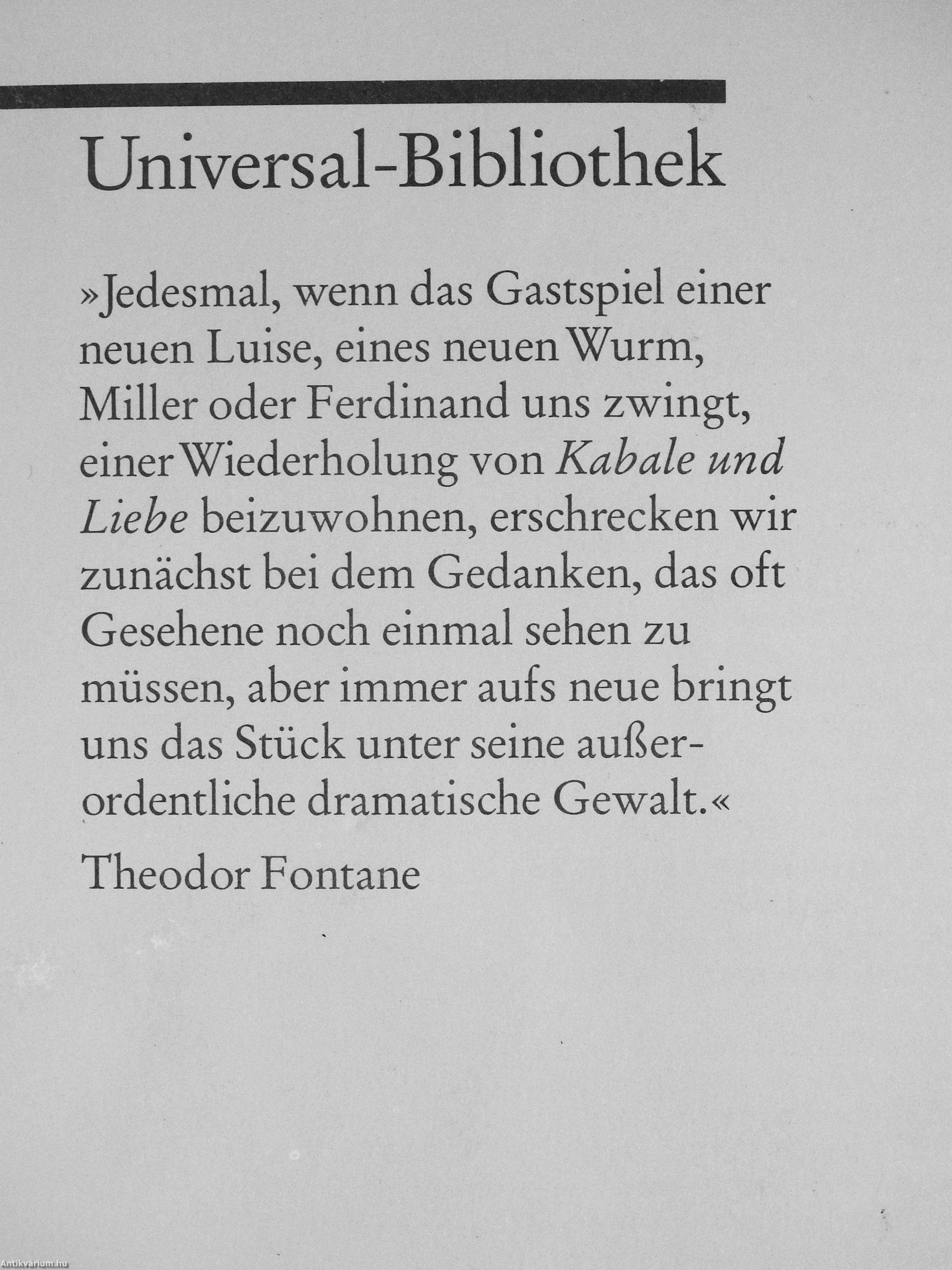 »Jedesmal, wenn das Gastspiel einer neuen Luise, eines neuen Wurm, Miller oder Ferdinand uns zwingt, einer Wiederholung von Kabale und Liebe beizuwohnen, erschrecken wir zunächst bei dem Gedanken, das oft Gesehene noch einmal sehen zu müssen, aber immer aufs neue bringt uns das Stück unter seine außerordentliche dramatische Gewalt.«