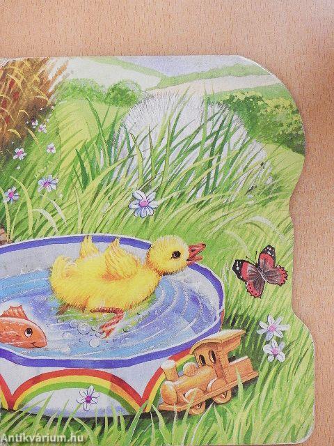 Kacsa Kata elcsavargott otthonról és most hiába keresi anyukáját, nem találja seho. Egyszer csak meglát a fűben két piros lábat. Vajon ez a kacsamama lába?
