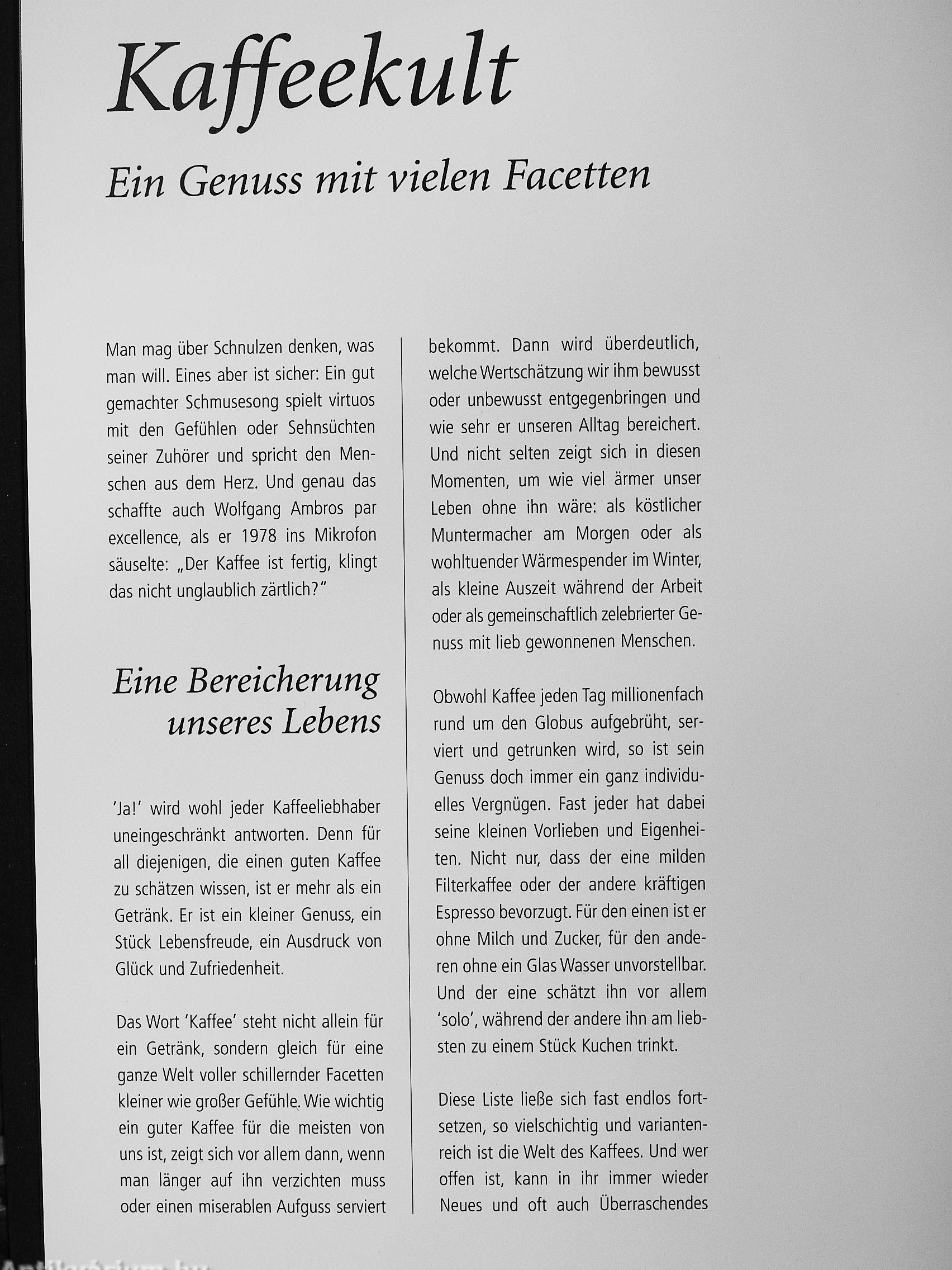 Kaffeespezialitäten, die man dort serviert bekommt. Zudem werden die Geschichte des Kaffess nacherzählt und alle wichtigen Fakten rund um den Kaf-feegenuss erläutert. Das perfekte Kaffeevergnügen runden stilvoll zwei CDs mit der besten Kaffeehausmusik ab.