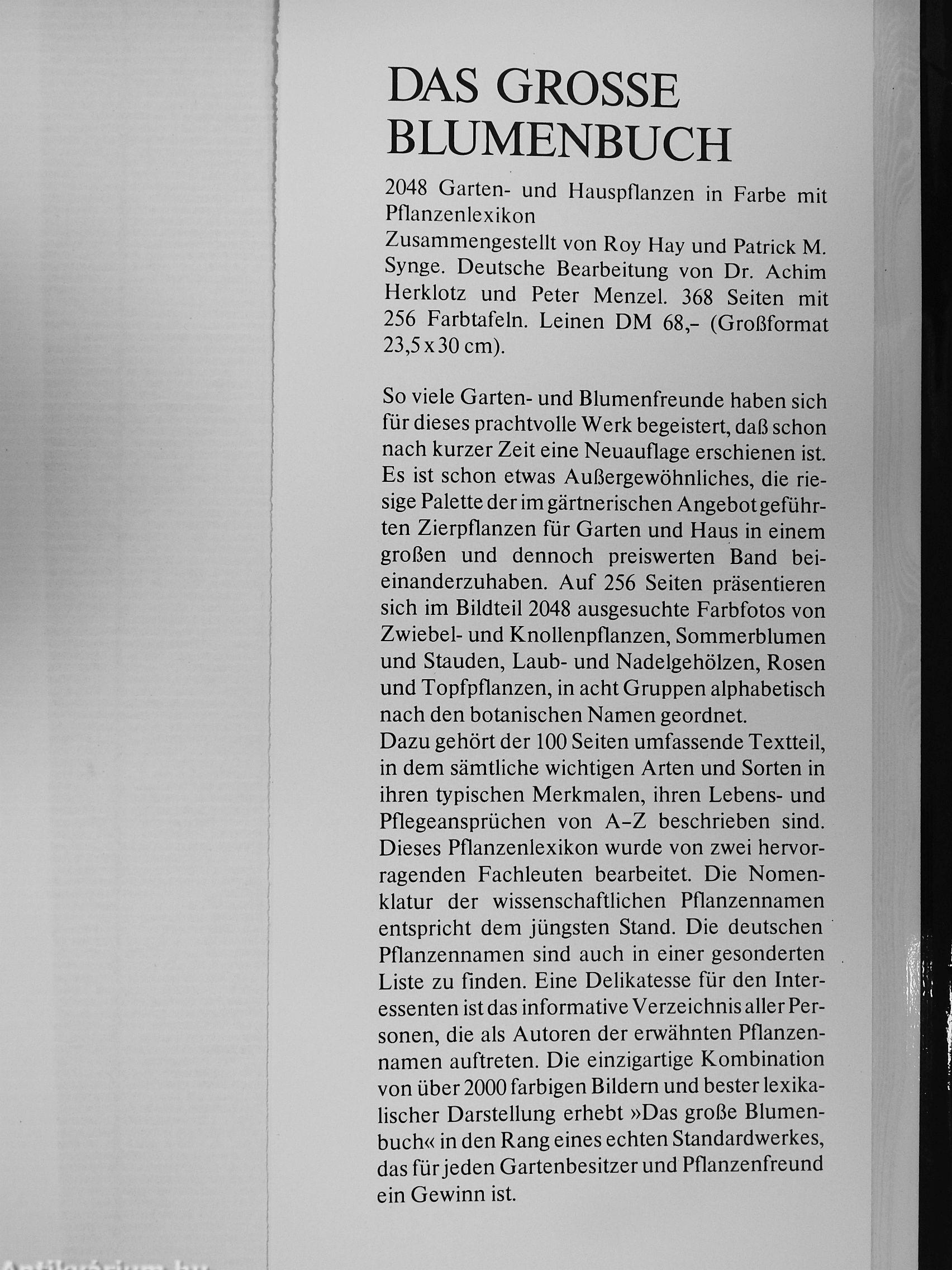 Zusammengestellt von Roy Hay und Patrick M. Synge. Deutsche Bearbeitung von Dr. Achim Herklotz und Peter Menzel. 368 Seiten mit 256 Farbtafeln. Leinen DM 68,- (Großformat 23,5x30 cm).