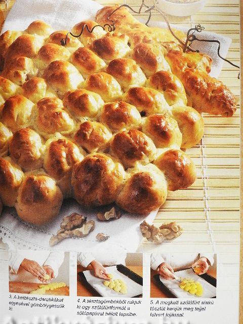 A tészta hozzávalóit alaposan összedolgozzuk, amíg egy keményebb tésztát nem kapunk. Ha megkelt, borítsuk ki az egészet deszkára, és apró pogácsaszaggatóval szaggassuk ki, zsírozott tortaformába helyezzünk belőle egy sort, és locsoljuk meg olvasztott vajjal. Minden sor tésztát hintsünk meg bőven diós cukorral. Újból kelesztjük, kétszeresére, majd lassú tűznél sütjük. Ha megsült, a tortakarimát lehúzzuk róla, és a tortalappal együtt tesszük tálra. Vaníliás cukorral megszórjuk, és melegen tálaljuk. Nem vágjuk, hanem tépjük. Vaníliamártást, illetve csokoládé- vagy borsodót adunk hozzá. Vissza