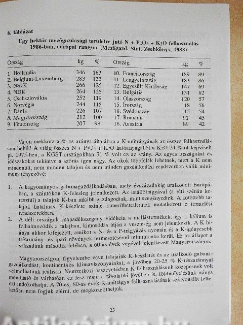Műtrágya és kálisó felhasználásunk a 80-as években nemzetközi összehasonlításban 22
