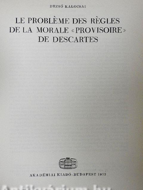 : LE PROBLEMEDES REGLES DE LA MORALE «PROVISOIRE» DE DESCARTES