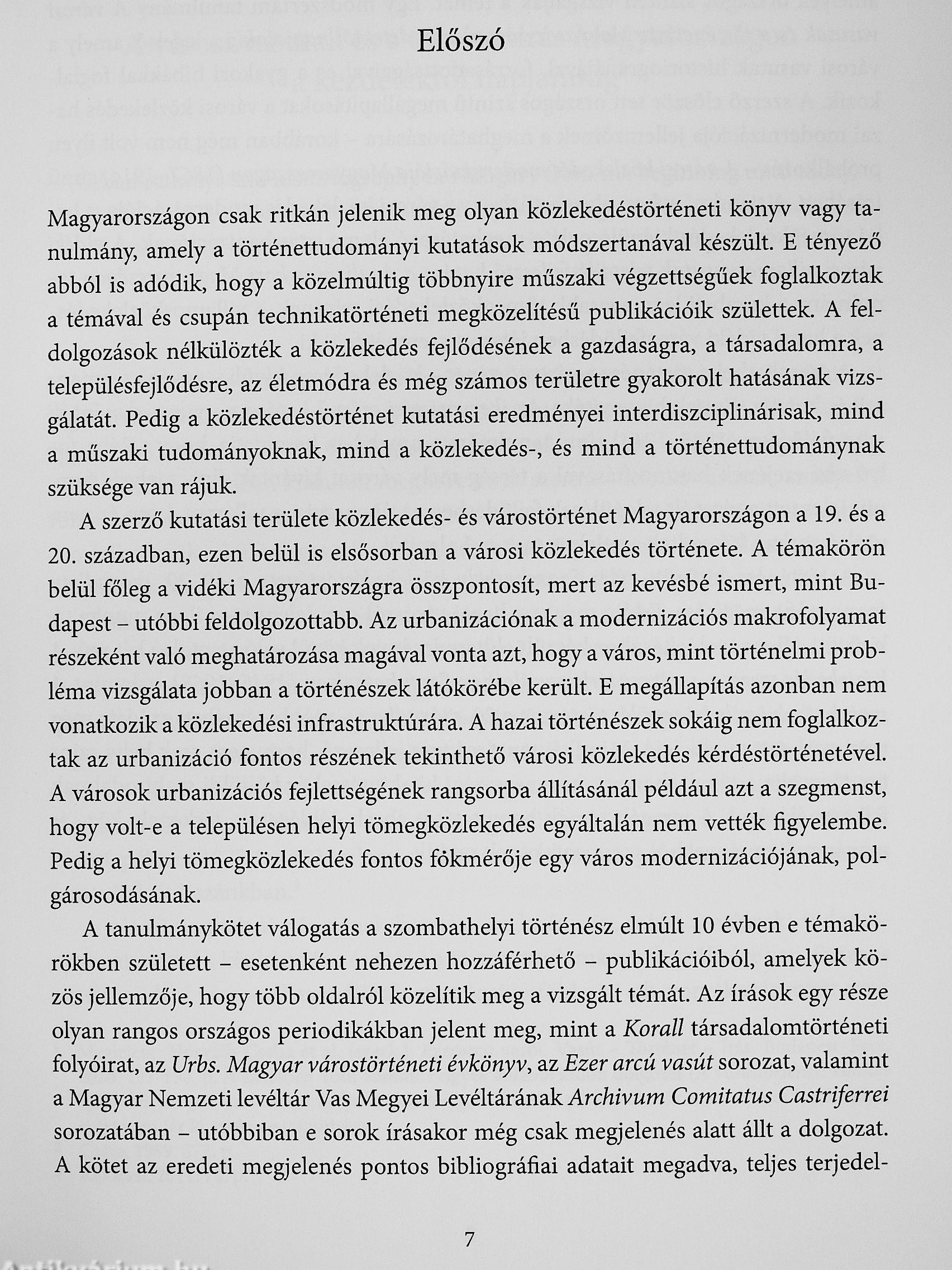 Közlekedés- és várostörténeti tanulmányok (19-20. század)