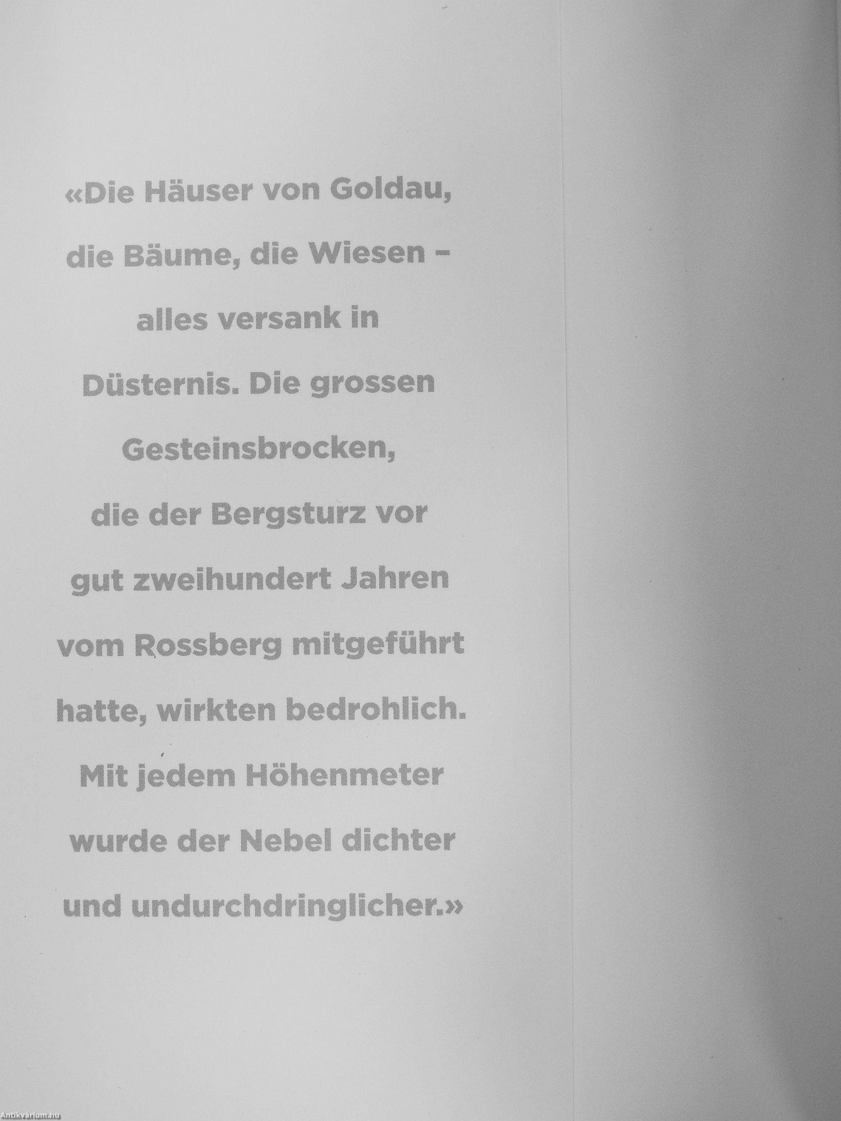 Gesteinsbrocken, die der Bergsturz vor gut zweihundert Jahren vom Rossberg mitgeführt hatte, wirkten bedrohlich. Mit jedem Höhenmeter wurde der Nebel dichter und undurchdringlicher.»