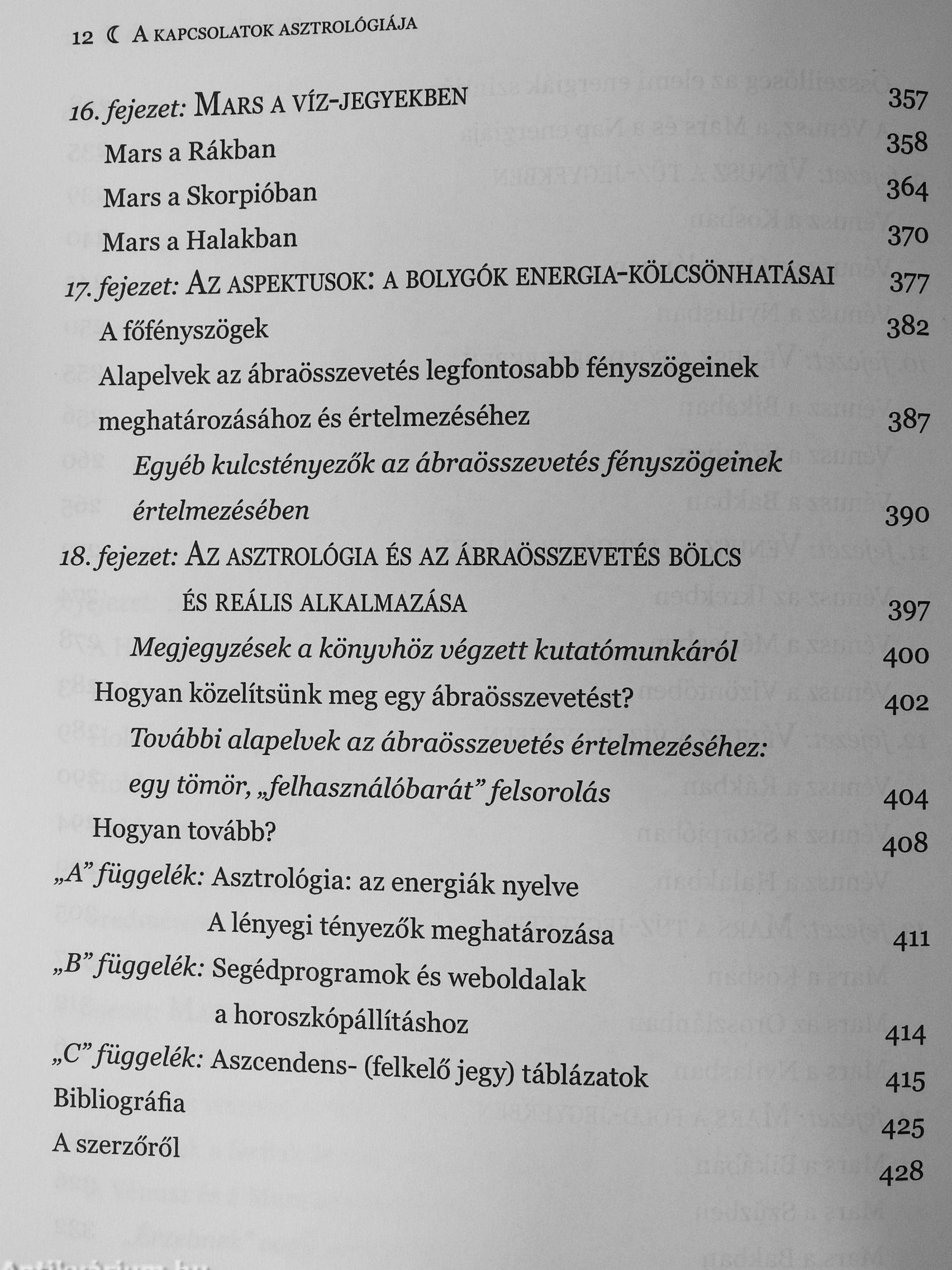 „ Arroyo az asztrológiát elsősorban a - pszichológiai, spirituális, kapcsolati - átalakulás erőteljes eszközének tekinti. A szerző - akinek minden új publikációja esemény az asztrológiában - a Kapcsolatok asztrológiájáhsLH a személyközi viszonyok és a párkapcsolatok asztrológiája területén az elmúlt harminc évben szerzett tapasztalatait foglalja össze."