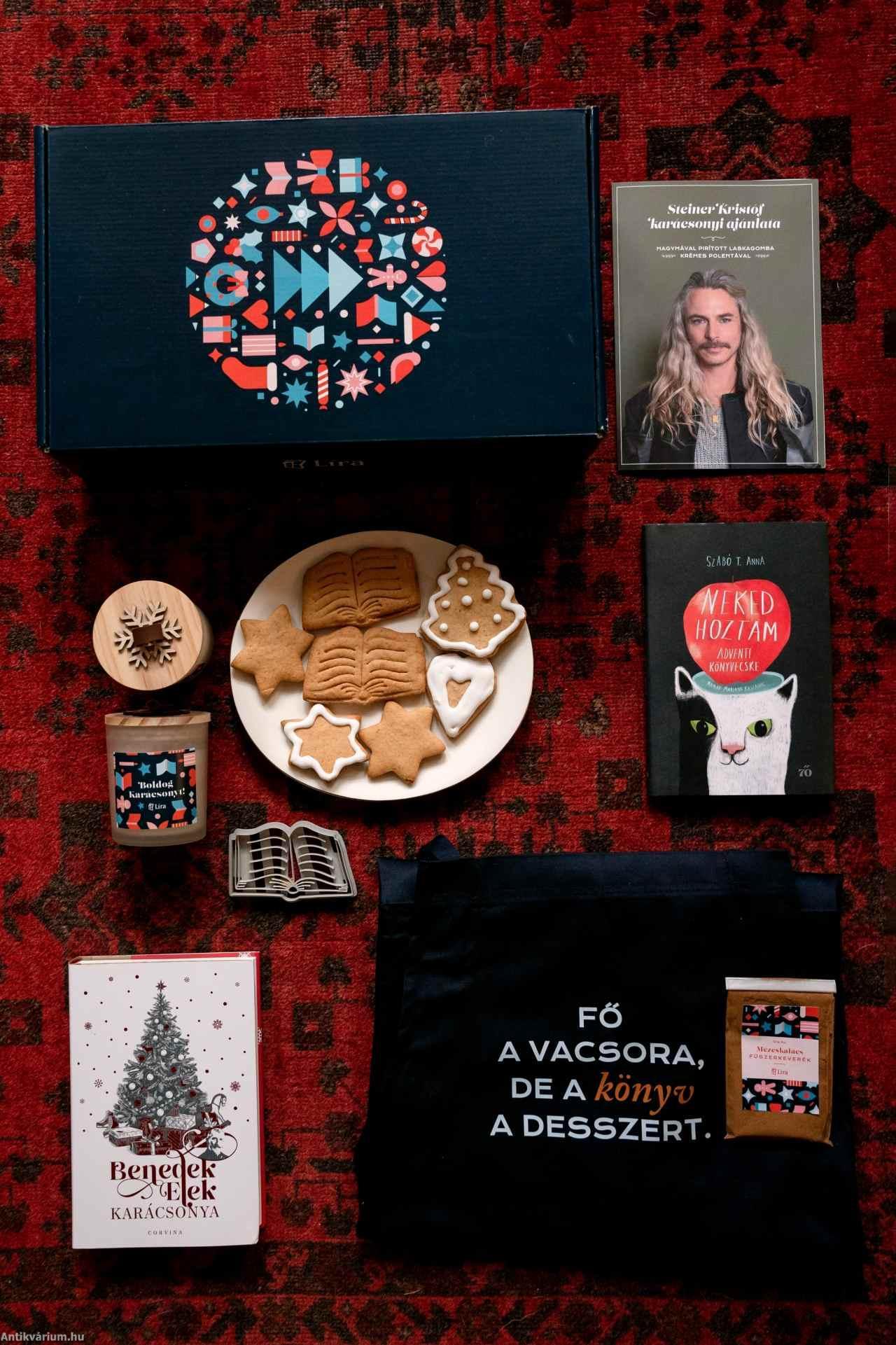 A Líra különleges karácsonyi díszcsomagjai mindent tartalmaznak, ami egy meghitt, olvasással teli ünnephez kell: gondosan válogatott könyveket, ünnepi illatokat, egyedi konyhai kiegészítőket és egy exkluzív, Steiner Kristóf-receptet, amely csak ebben a csomagban található meg.