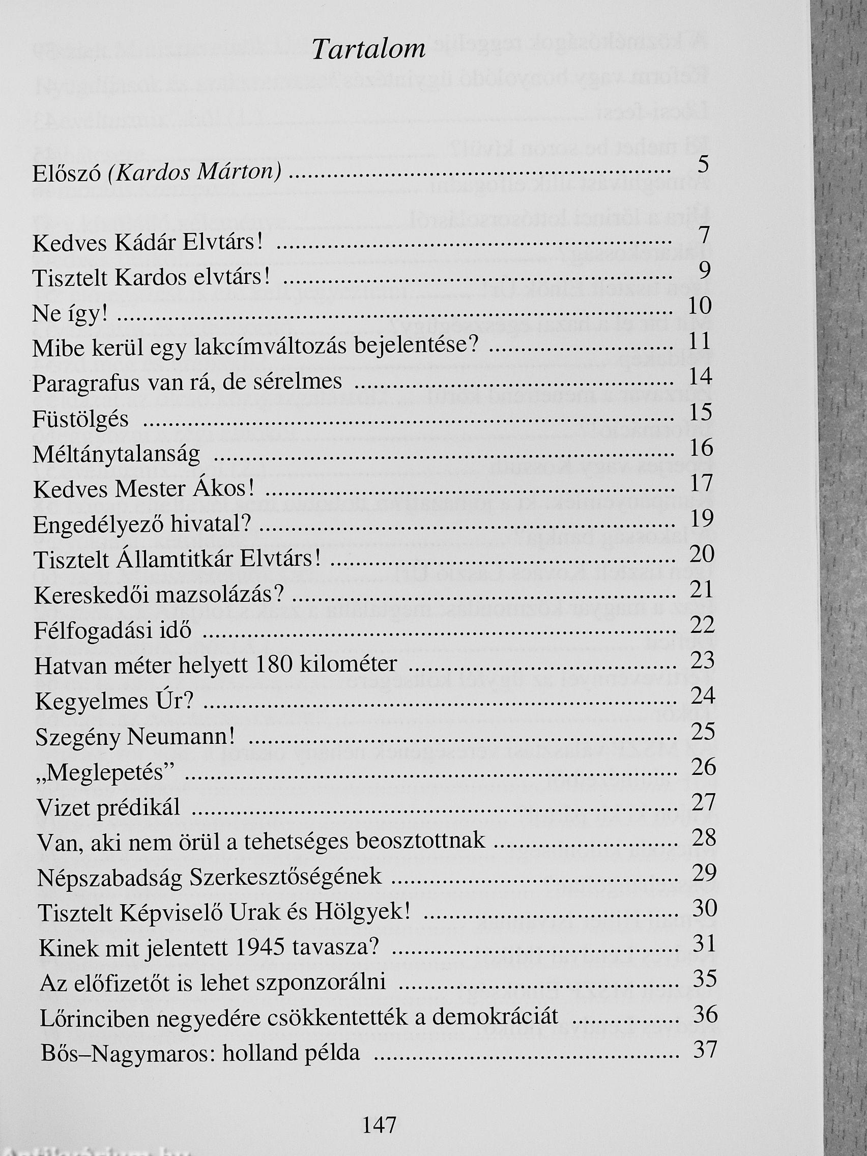 Az 1960-as évektől vettem a bátorságot, hogy ezeket nyilvánosan szóvá tegyem. Később leirtam és elküldtem különböző országos és helyi vezetőknek és újságoknak. A kötet e levelekből összeállított válogatást tartalmaz.