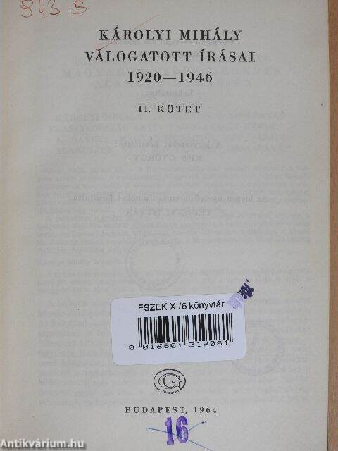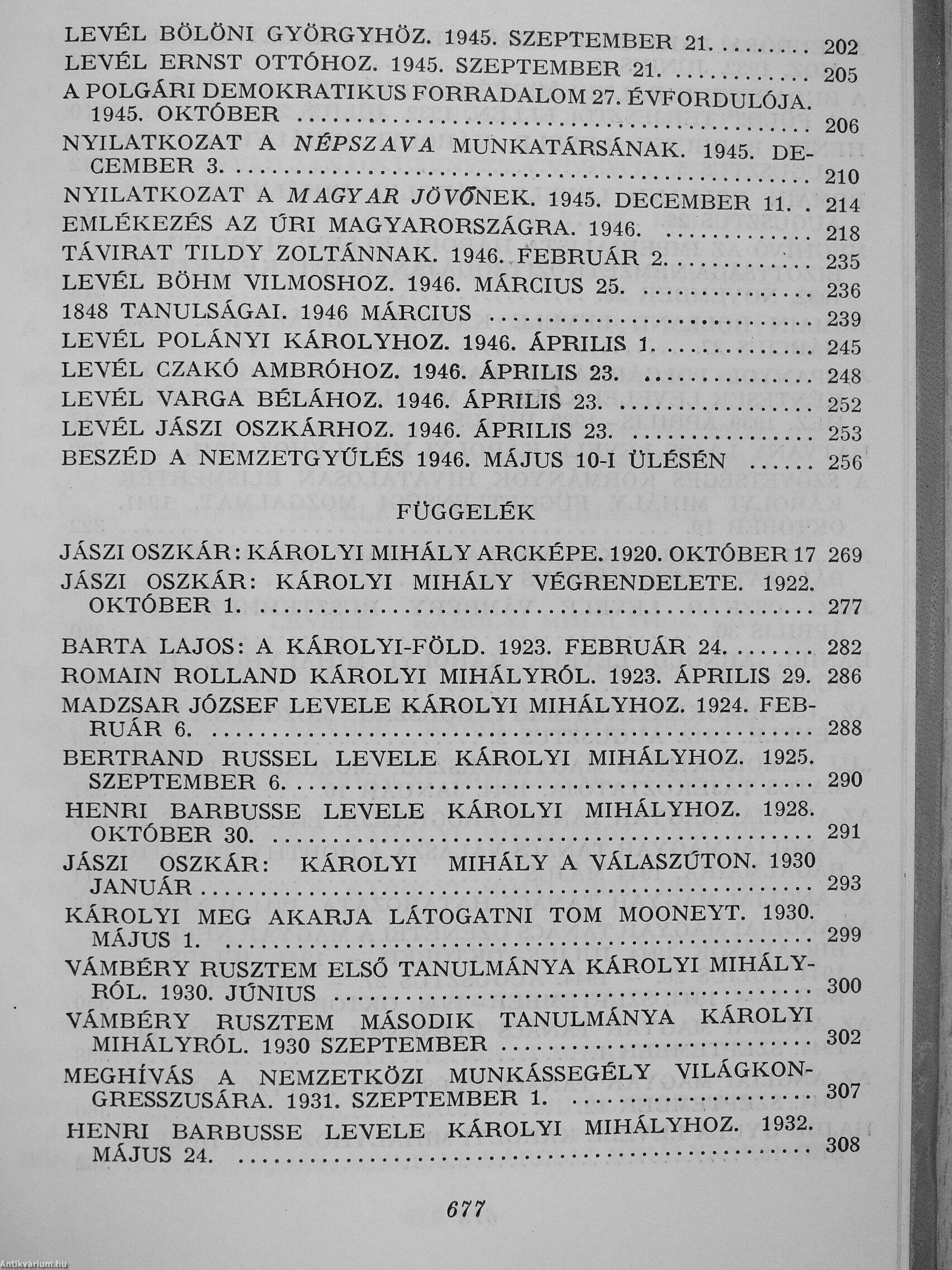 Károlyi Mihály műveinek az Antikvarium.hu-n kapható vagy előjegyezhető listáját itt tekintheti meg: Károlyi Mihály könyvek, művek