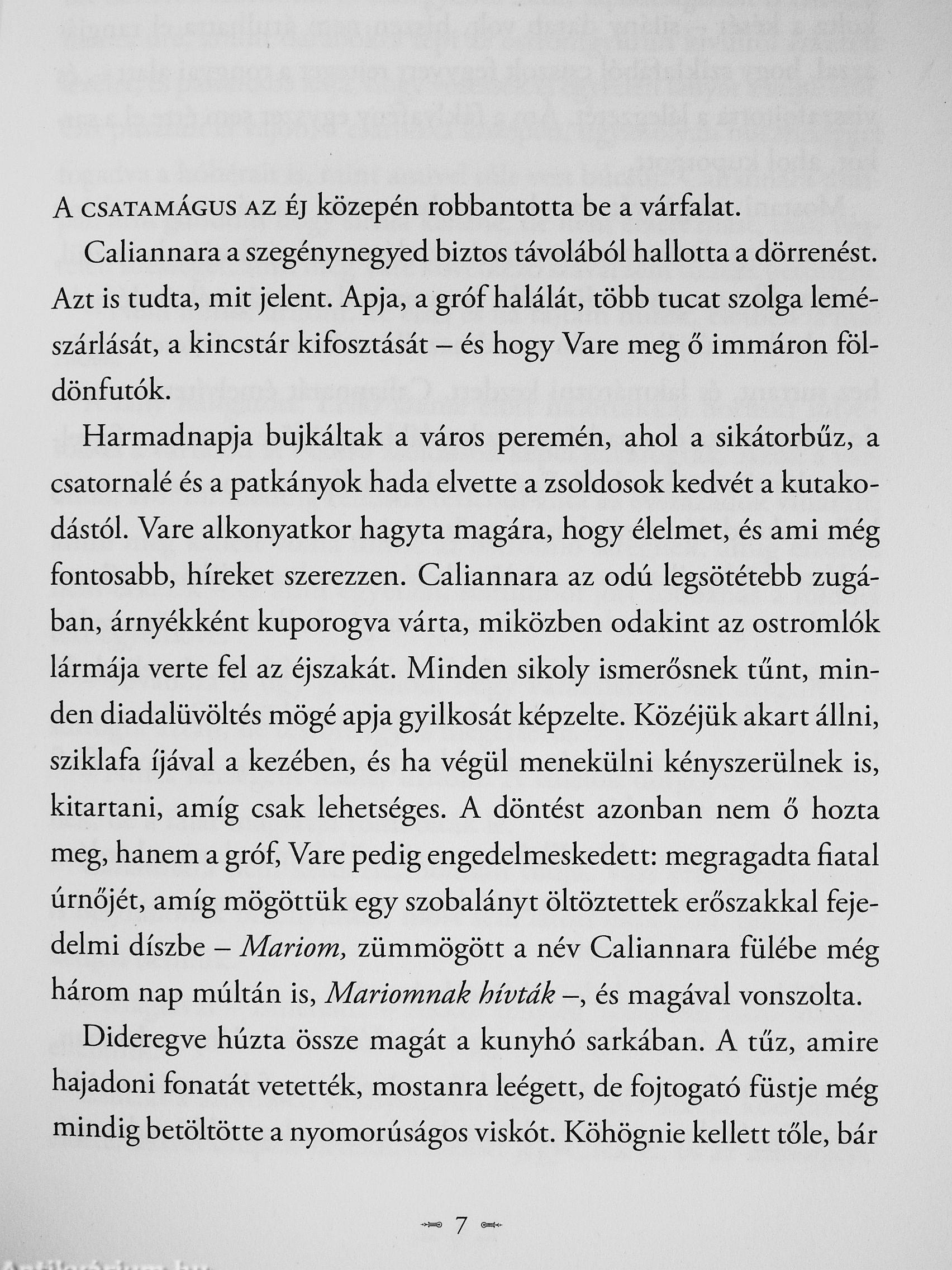 tudott elmenekülni? Caliannara túléli a mészárlást, de hűséges testőre nélkül menekül, és kalandos módon zsoldosokhoz csatlakozik. Vajon elég az ottani felcser pártfogása, hogy a grófkisasszonyból harcos válhasson, ha mindenki más közönnyel, a kapitány pedig egyenesen ellenszenwel méregeti?