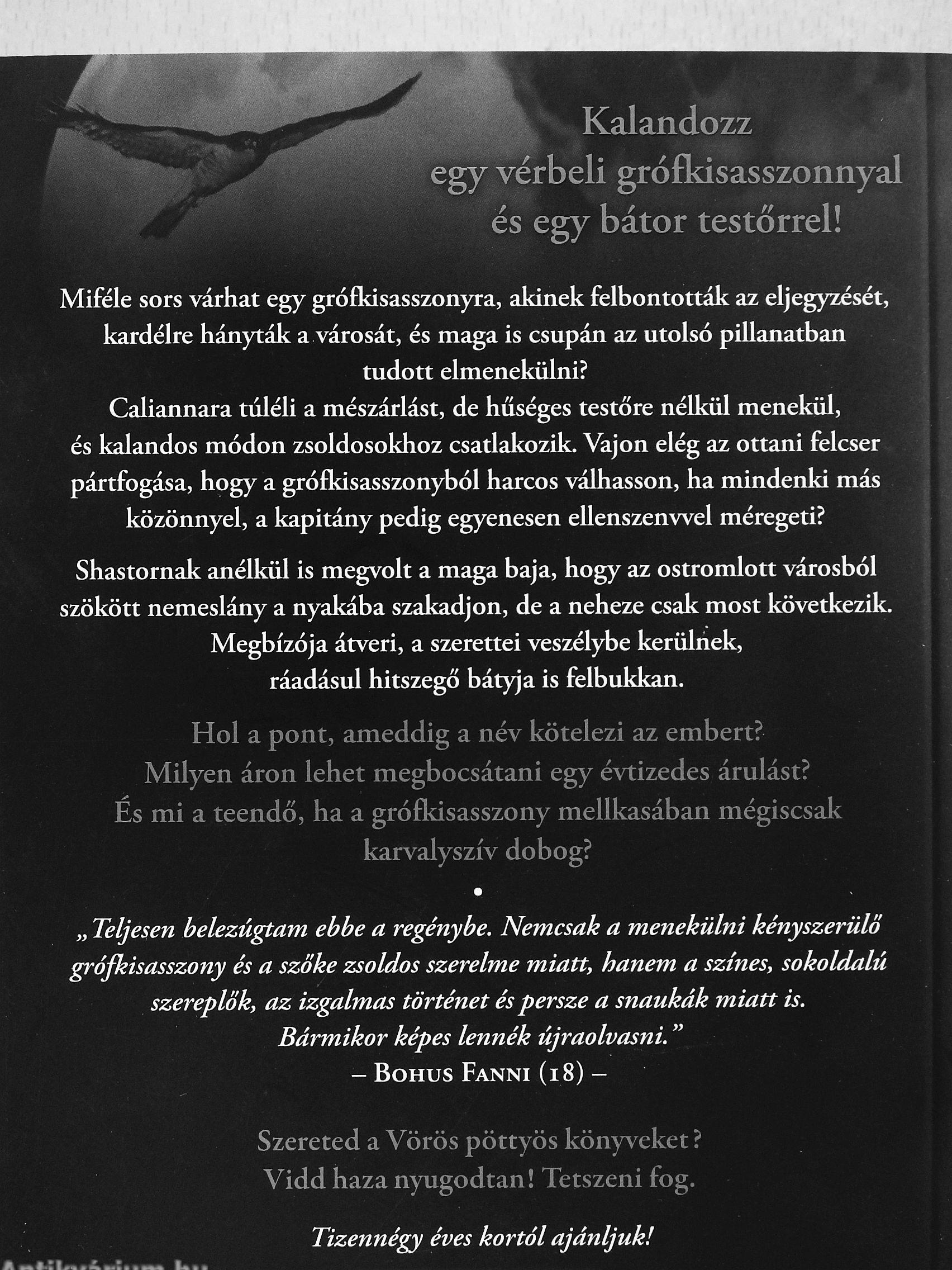 „ Teljesen belezúgtam ebbe a regénybe. Nemcsak a menekülni kényszerülő grófkisasszony és a szőke zsoldos szerelme miatt, hanem a színes, sokoldalú szereplők, az izgalmas történet és persze a snaukák miatt is. Bármikor képes lennék újraolvasni." - Bohus Fanni (i8)-