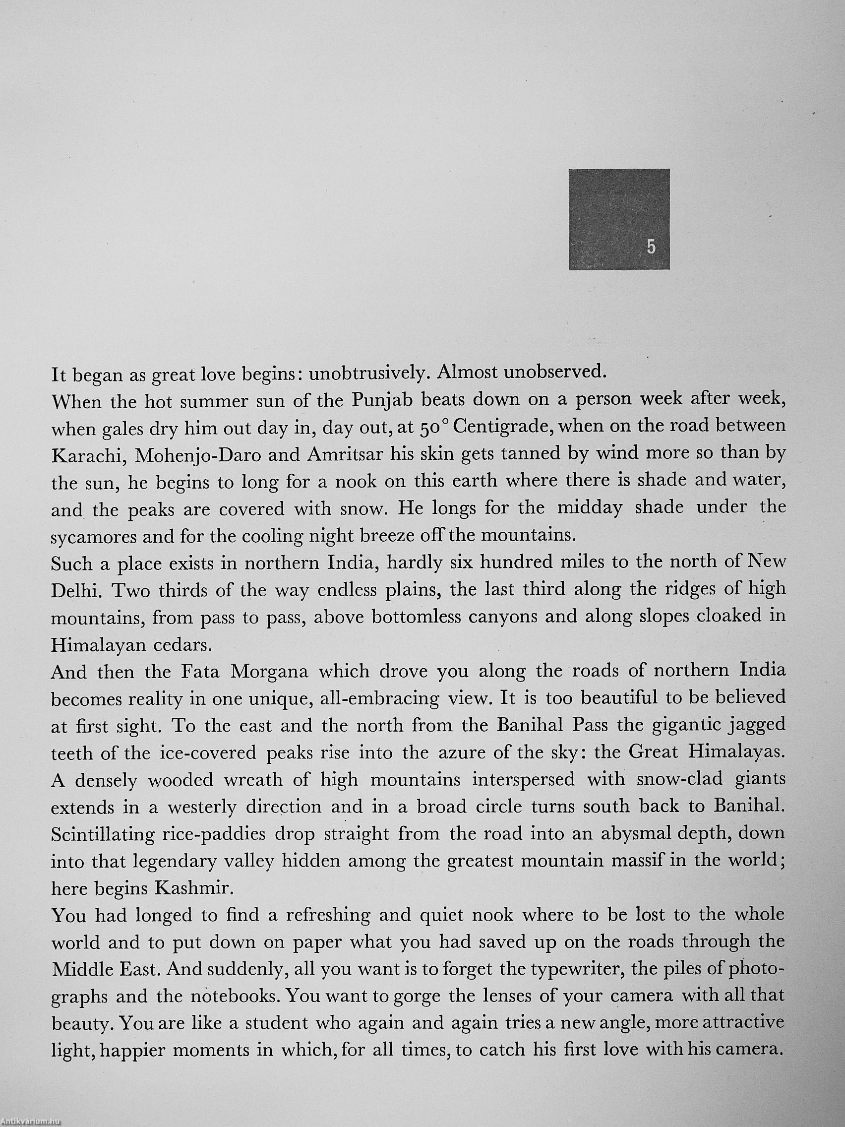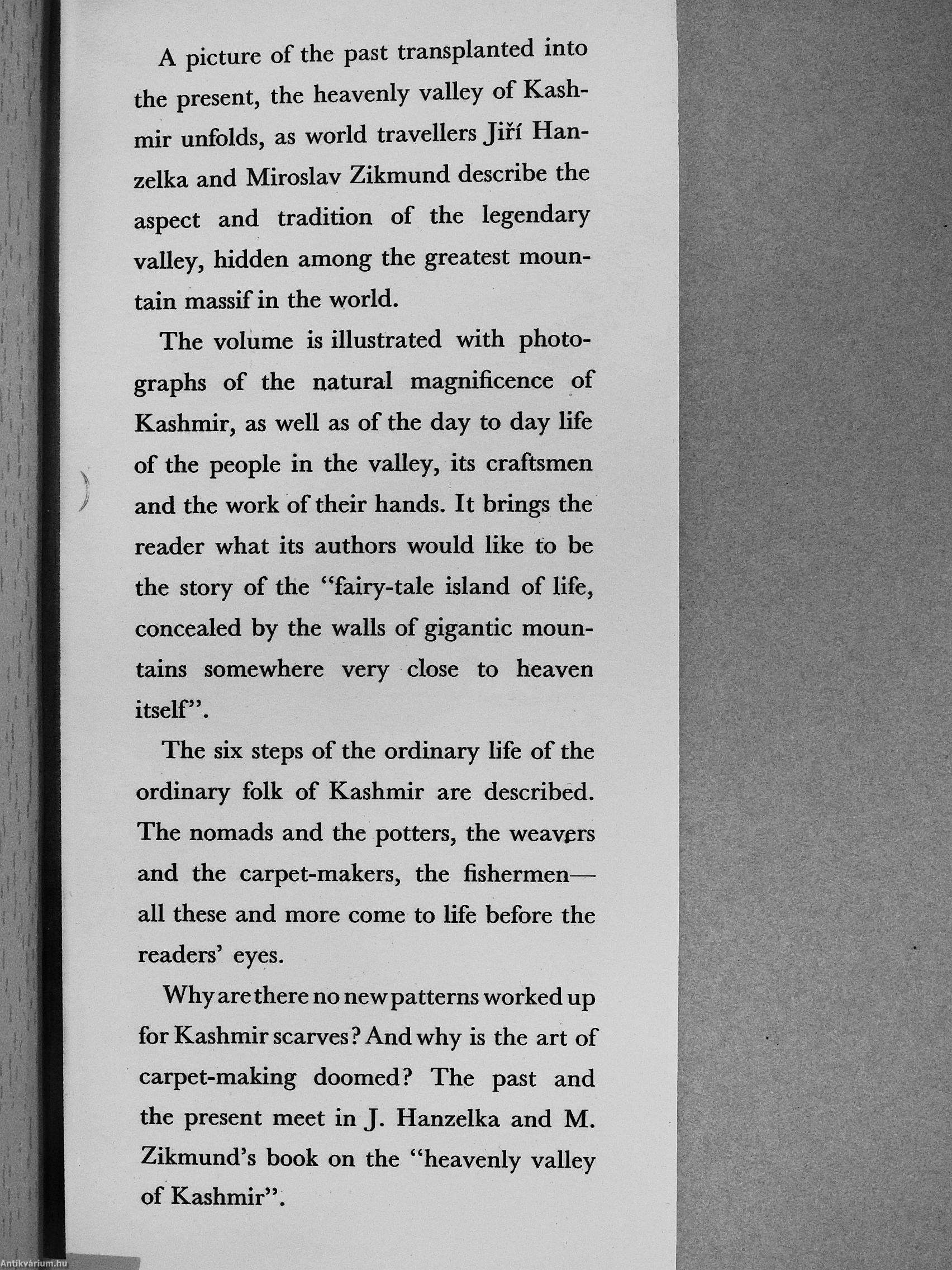 A picture of the past transplanted into the present, the heavenly valley of Kashmir unfolds, as world travellers Jifi Han-zelka and Miroslav Zikmund describe the aspect and tradition of the legendary valley, hidden among the greatest mountain massif in the world.