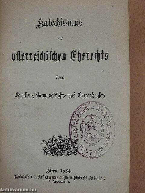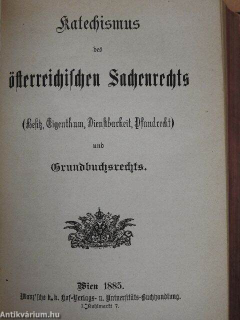 I. Katechismus des österreichischen Eherechts/II. Katechismus des österreichischen Erbrechts/III. Katechismus des österreichischen Sachenrechts/IV. Katechismus des österreichischen Vertragsrechts