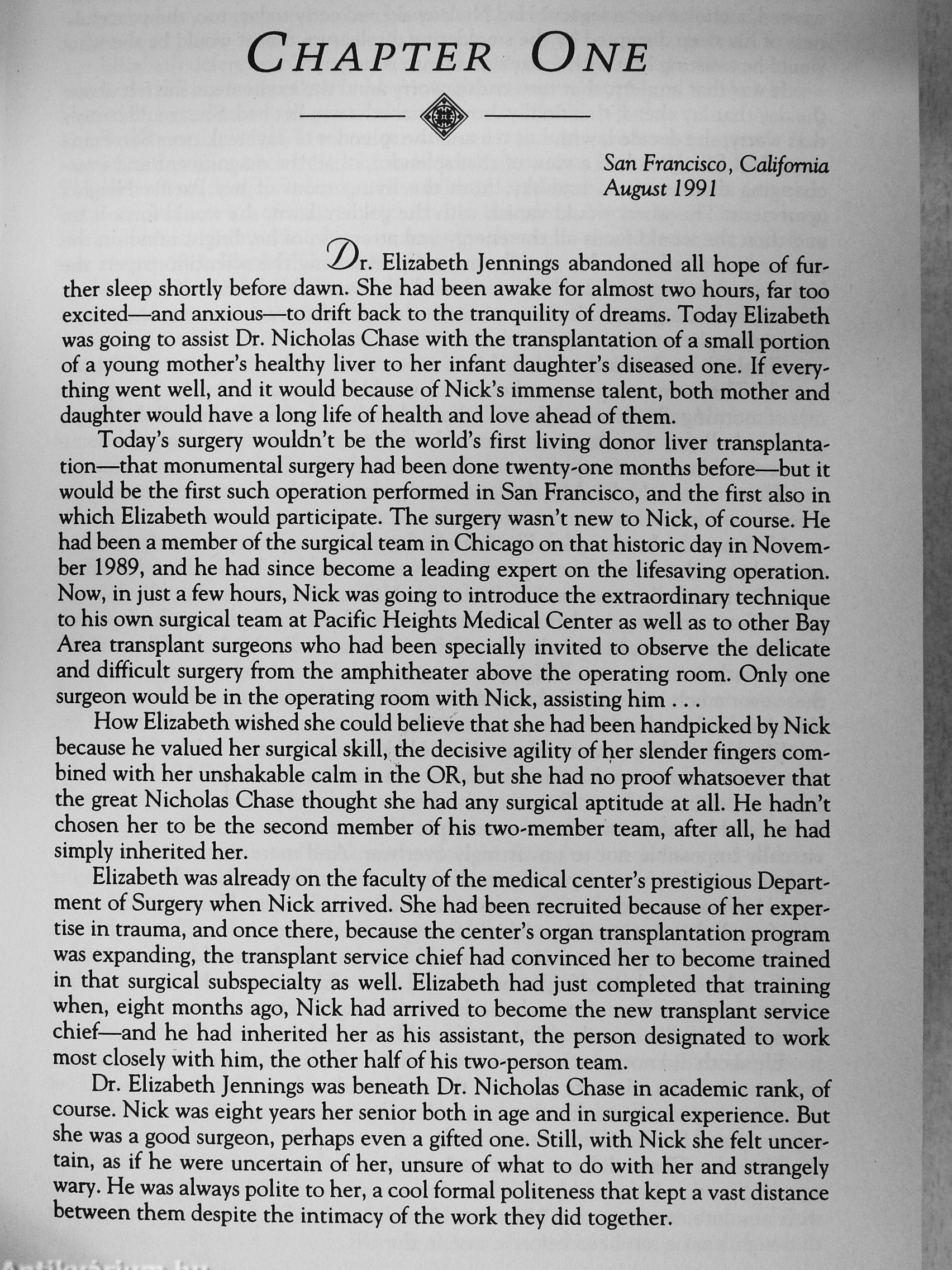 Sweeping readers from San Francisco to New York to Paris and in and out of the life-and-death world of medicine, PROMISES intertwines the lives, hopes, and struggles of brilliant, but troubled men and women—dedicated surgeon Dr. Elizabeth Jennings, the deeply private Dr. Nick