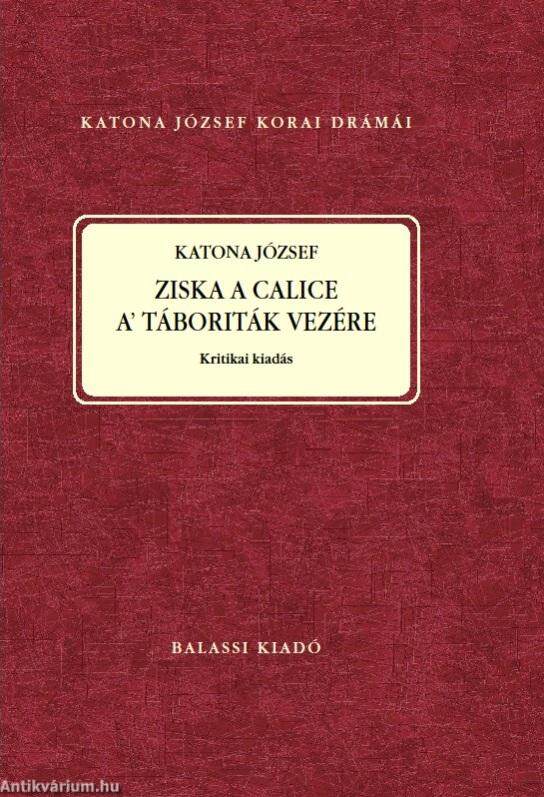 A dráma teljes címe: Ziska a Calice a' Táboriták Vezére. 1813-ban keletkezett, s ennek a korai korpusznak több szempontból is kiemelkedő darabja. A kor egyik népszerű színjátéktípusának, a lovagdrámának az eszközeit a históriai tárgyú jellemdráma műfajába emeli. Tárgytörténeti érdekessége, hogy Katona témaválasztása egyéni és eredeti: a cseh husziták történetét dolgozza fel. Forráskritikai szempontból is tanulságos (német epikus szöveg önálló dramaturgiai felfogással történő színpadra vitele). Érdekessége, hogy Katona a kettős dráma szövegét kísérő tanulmányokkal, bőséges jegyzetekkel látta el. Ez arról tanúskodik, hogy Katonának, a színházi szerzőnek a figyelme immár az olvasókra irányul. Funkcionális szempontból tehát fordulópontot jelez a Bánk bán előtt. A nagy mű felé mutat a lázadó hős lelki tusájának ábrázolása. Dramaturgiai értékei mellett ez a dráma a mai színház figyelmét is felkeltheti. A kötet a kettős dráma és a szerző által írt kísérő szövegek közlése mellett filológiai tanulmányokat tartalmaz, amelyek a mű keletkezésével, forrásaival, nyelvi és dramaturgiai sajátosságaival, tárgytörténetével és befogadástörténetével, utóéletével foglalkoznak.