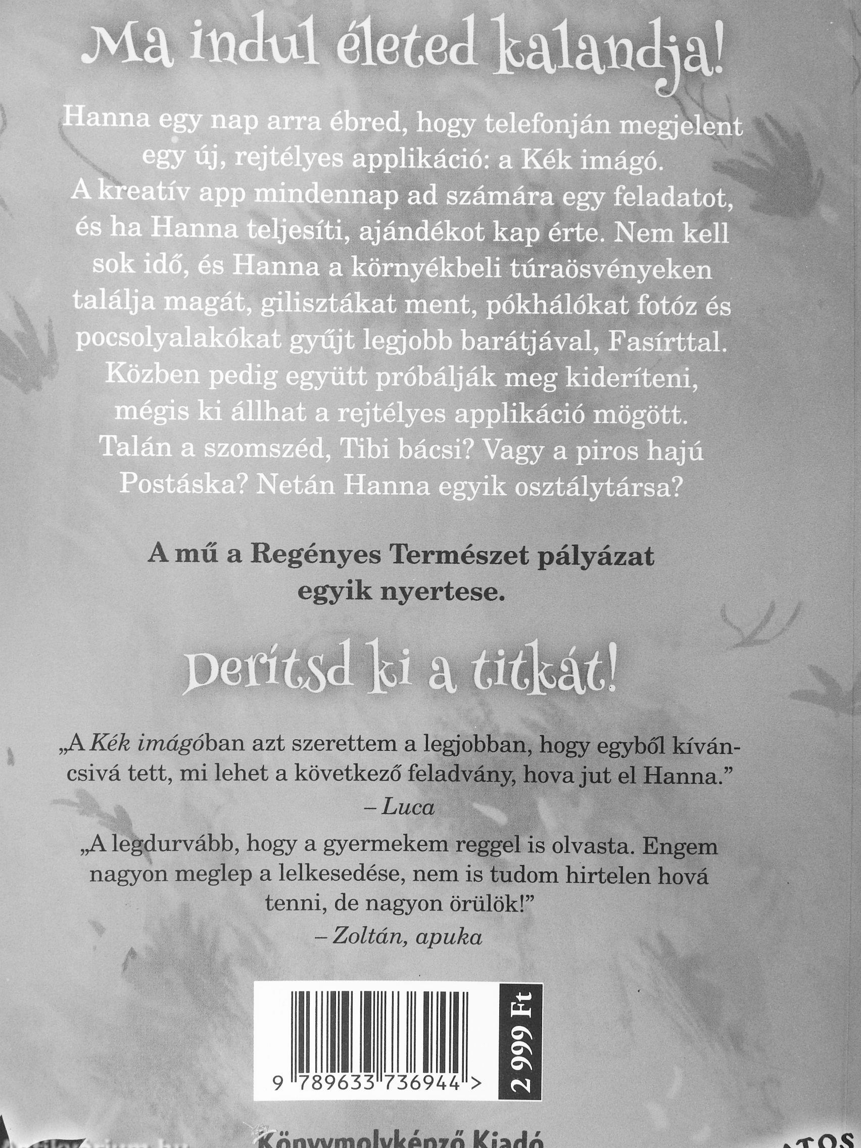 ök idő, és Hanna a környékbeli túraösvényeken taiáj^a magát, gilisztákat ment, pókhálókat fotóz és pocü)}yalakókat gyűjt legjobb barátjával, Fasírttal, fe Eö^ben pedig együtt próbálják meg kideríteni, piégis ki állhat a rejtélyes applikáció mögött. " TaJán a szomszéd, Tibi bácsi? Vagy a piros hajú Postáska?jNetán Hanna egyik osztálytársa?