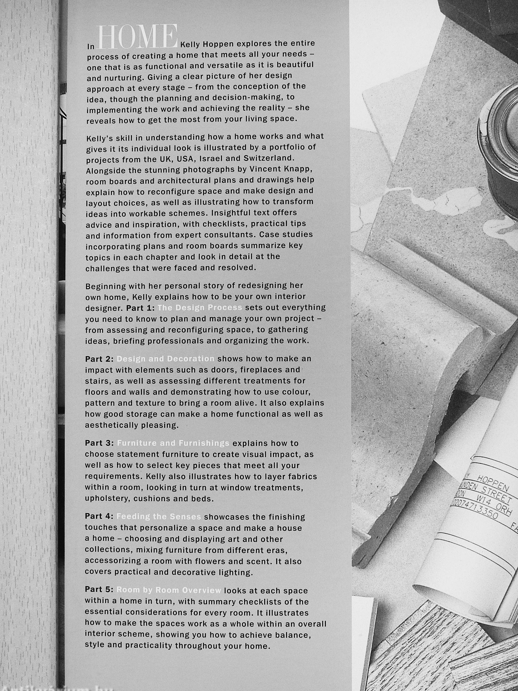 Beginning with her personal story of redesigning her own home, Kelly explains how to be your own interior designer. Part liQJj^^^^X^^^^^ sets out everything you need to know to plan and manage your own project -from assessing and reconfiguring space, to gathering ideas, briefing professionals and organizing the work.