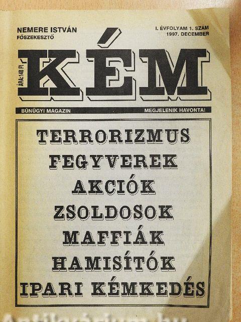 Ilyen folyóirat még nem volt soha, sehol a világon! A KÉM nevéhez illően titkosszolgálatokkal foglalkozik. Kémek, kommandósok, zsoldosok akcióival, rejtélyes háborúkkal és titokzatos ügyekkel. Azzal, ami a kulisszák mögött történt, történik, vagy megtörténhetett. Fellebbenti a fátylat a huszadik század elfelejtett vagy teljesen soha meg nem ismert eseményeiről. Szól a kémkedés történetéről, lehallgatásokról, kémbotrányokról, és terrorizmusról. Lapjain szó esik a maffiák viselt dolgairól, ipari kémkedésről, lebukásokról és arról is: mi, állampolgárok, üzletemberek hogyan védekezhetünk például az ipari kémek ellen?