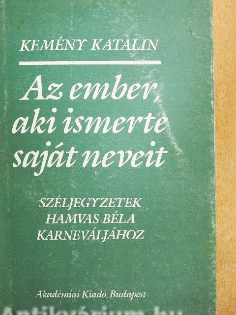 Kemény Katalin lírai alkatú író, műfordító. Férje, Hamvas Béla sorsához hasonlóan ő is majd négy évtizedes silentium után léphetett újból a nyilvánosság elé. Az utóbbi években több szépirodalmi, valamint esztétikai tanulmánya jelent meg.
