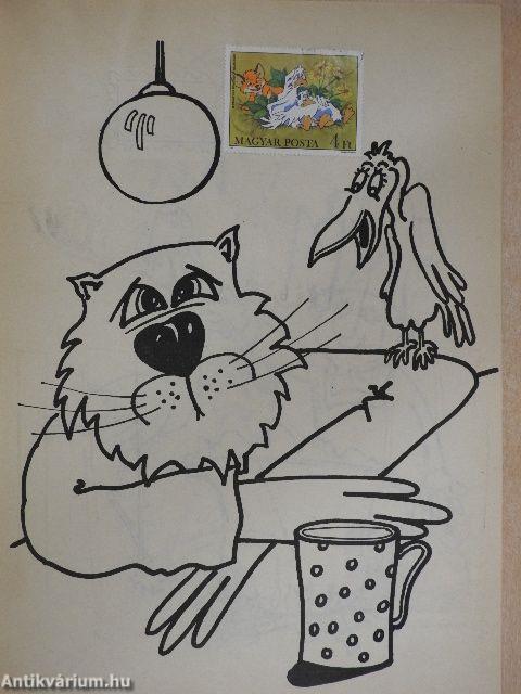 | Megjegyzés: | Kifestőkönyv. 24 darab beragasztható bélyeggel. Fekete fehér illusztrációkkal. |