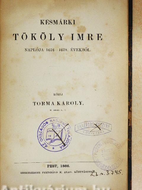 Pár ív átolvasása meggyőzött a felől, hogy e kézirat Tököly Imre naplója az 1676-78. évekről; a kéziratra vetett első pillantás pedig arról, hogy az nem eredeti, hanem Tököly naplójának a múlt század derekán, legkésőbben pedig vége felé, vett másolata. Vissza