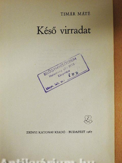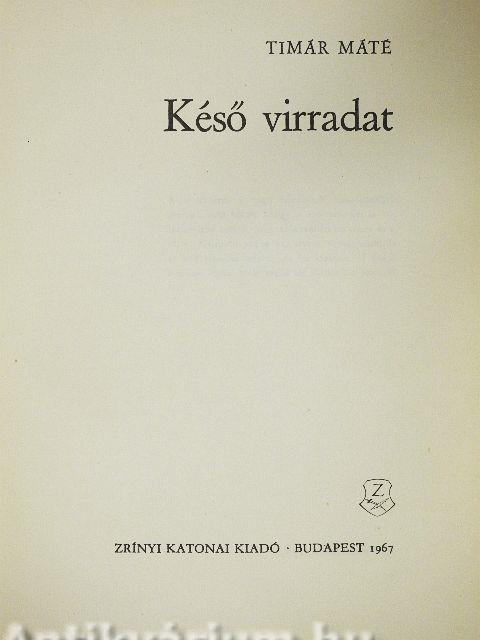 A Késő virradat izgalmasan pergő, gazdag cselekményű regény. Méltán sorol a szerző híres alkotásai - a Majoros Ádám krónikája, a Száztű hossza és a Szőrtarisznya - mellé.