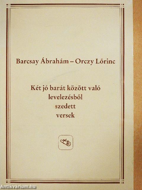 Kazinczy írja Cserey Farkasnak: „Orczynak és Barcsaynak verseit újra átdolgozni nem lehet; elég érdem lesz, ha azokat (mert Barcsaynak verseit az Orczyé nélkül nem lehet kiadni, sok levele válasz lévén az Orczyéra és az Orczy nélkül nem érthetik), elég érdem lesz, mondom, ha systematikus rendbe hozod, holmi homályt felvilágosítasz..."
