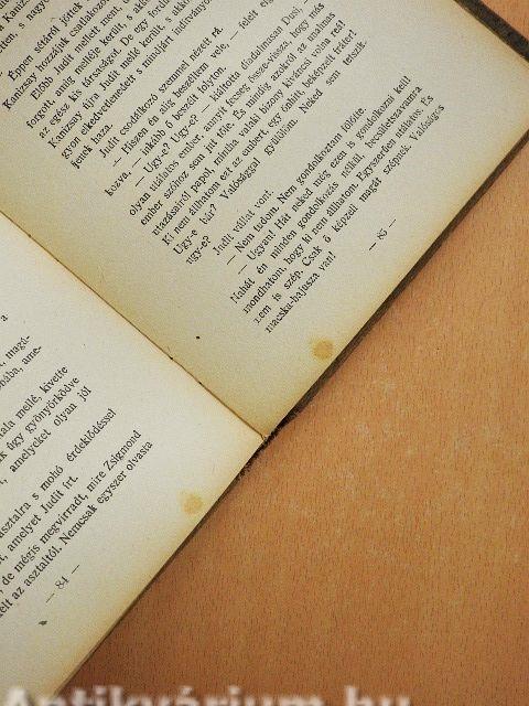Valahogy nem illett hozzá az ilyen dédelgető, kicsinyítő becenév, s talán még bölcsőbeli kis baba korában is úgy szólította az édes anyja: Judit. Nagy, kék szemével olyan komolyan, olyan áthatóan tudott nézni, piciny cseresznyepiros ajkát összeszorította s gyönyörűen formált; boltozatos, fehér homloka mögött szinte látszott, hogyan kergetik, űzik egymást a komoly gondolatok.