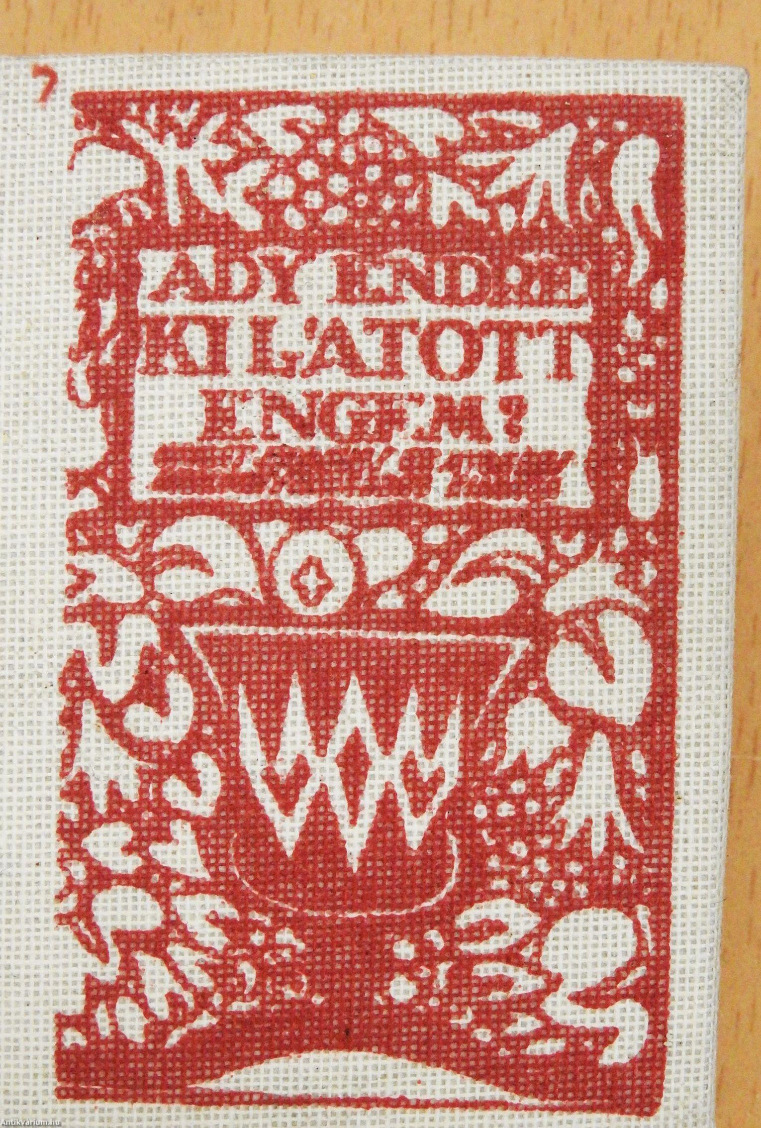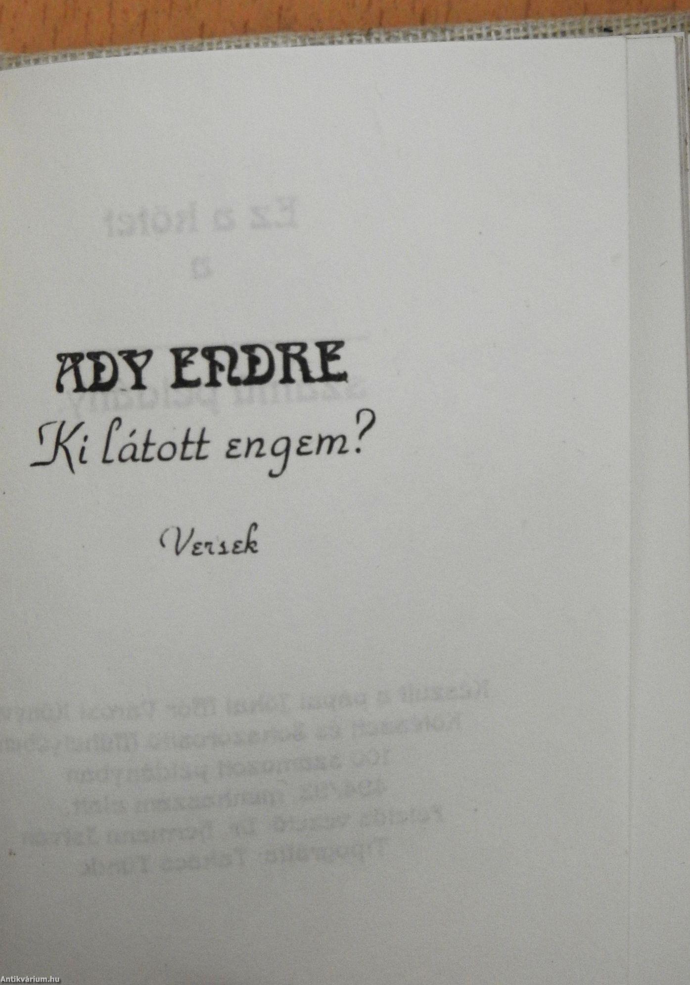 Ady Endre műveinek az Antikvarium.hu-n kapható vagy előjegyezhető listáját itt tekintheti meg: Ady Endre könyvek, művek
