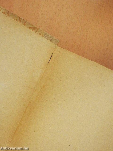 A borító kopott, elszíneződött. A lapélek foltosak. A kötés megtört, javított.