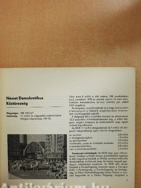 De vajon mindent megtud-e ily módon az országról? Megtudja-e mindenekelőtt hogy élnek és gondolkodnak az emberek? Mi önnek nemcsak az NDK különböző tájainak fontosabb történelmi és kulturális látnivalóit akarjuk bemutatni, hanem néhány olyan dolgot is, amit a látogató általában nem lát meg azonnal. Mindenekelőtt az NDK gazdaságát szeretnénk önnek bemutatni, fő ágaival és fontos fejlődési irányvonalaival. Más területet is meg fog ismerni: a kultúrát, a népművelést és a szabadidő kihasználását. Átfogó képet kap a Német Demokratikus Köztársaság embereinek az életéről. Először meglátogatja az NDK fővárosát, Berlint, majd az egyes megyékbe vezetjük el - összesen 14 megyébe, melyek a keleti-tengeri strand és a déli Középhegység vonulata között fekszenek, mindegyik a megyeszékhely nevét viseli. Reméljük, hogy hamarosan országunkban is üdvözölhetjük Önt!