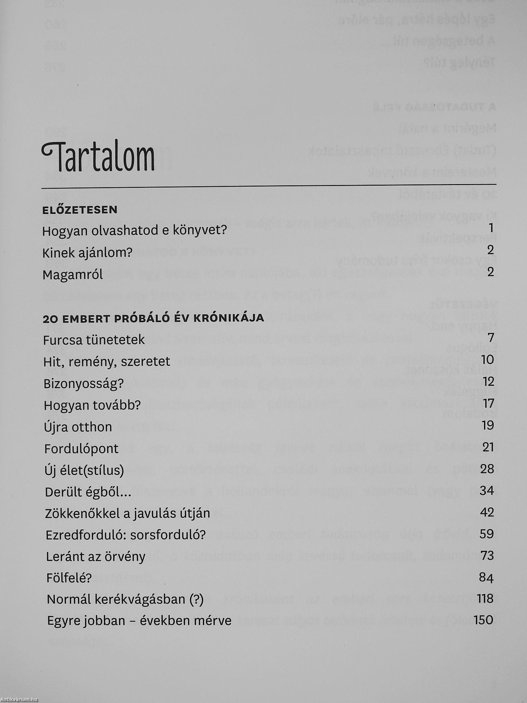 Az egészségem összeomlásának megrázó és ugyanakkor fölrázó pillanataiban rám törő felismeréseket szeretném megosztani veled az elmúlt húsz év krónikáján keresztül. Amikor - nálam szó szerint is előfordult - se jobbra, se balra, se előre, se hátra Amikor úgy éreztem, nincs kiút, nem bírom tovább
