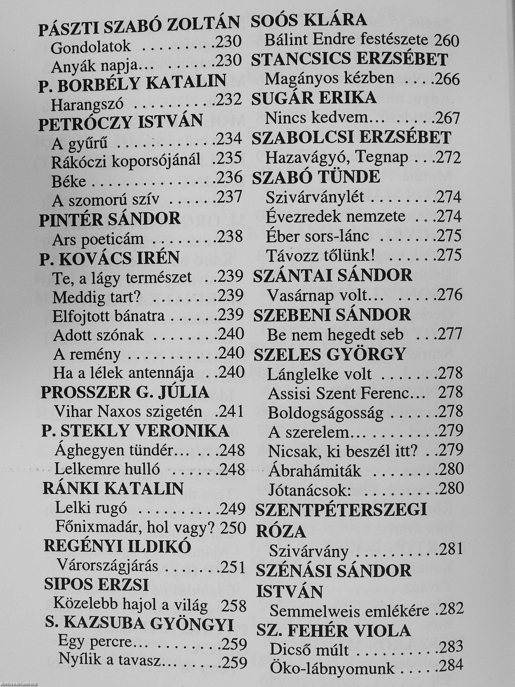 Sokféleképpen tehetjük, sokan tesszük is. Sportban, családépítésben, közösségépítésben, művészeti ágak művelésében. A „legolcsóbbak" közé tartozik az ének - és az írás. Ezek - együtt a beszéddel - anyanyelvünk megőrzésének egyik, ha nem a legfontosabb építőkövei. Akkor|i| nagyon fontosak, ha az - akár a „szegény, szerencsétlen", akár a „szervezett" - bevándorlók nem veszélyeztetik nyelvünket, nemzeti létünk megőrzését. Ezek fellengzős szavak, de ha mögéjük gondoljuk azoknak az embereknek az értékrendjét, akik számára a haza az egész „nagyvilág", más értelmet kap mindez.