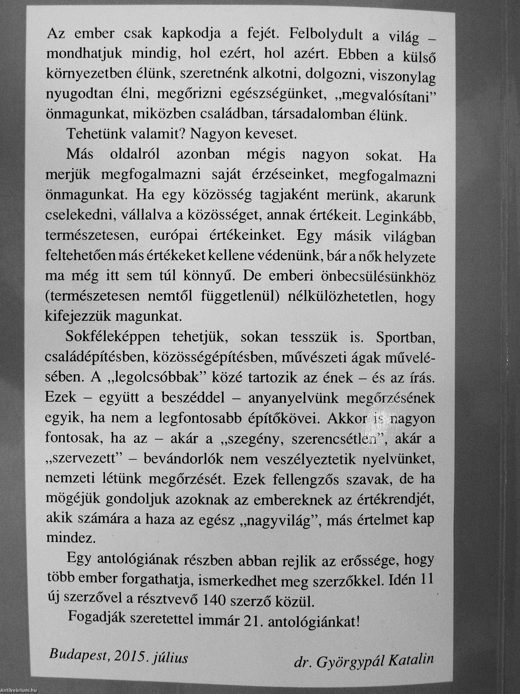 Sokféleképpen tehetjük, sokan tesszük is. Sportban, családépítésben, közösségépítésben, művészeti ágak művelésében. A „legolcsóbbak" közé tartozik az ének - és az írás. Ezek - együtt a beszéddel - anyanyelvünk...