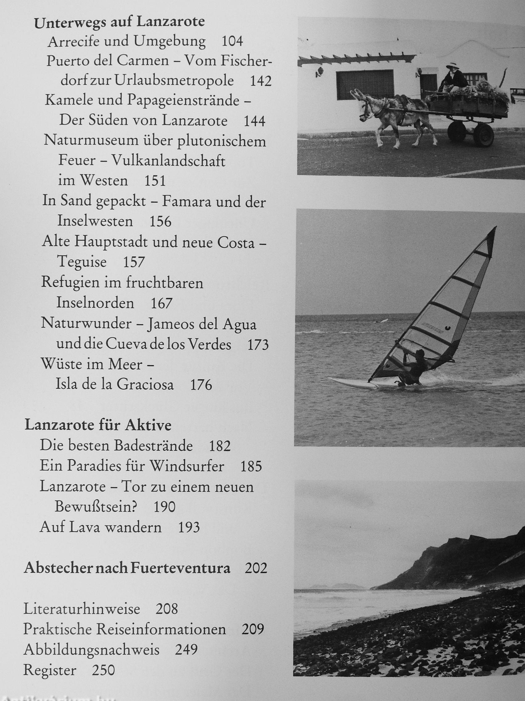 Abwechslungsreiche Ausflüge und Wandertouren führen durch die vielfäkigen Landschaften der einzelnen Inselregionen; sonnenhungrigen Badeurlaubern und aktiven Wassersportlern wird der Weg zu windgeschützten Stränden und surftauglichen Küstengewässern gewiesen. Wen es zu neuen Ufern zieht, erfährt Wissenswertes über die nördlich vorgelagerte Insel La Graciosa und das südliche Nachbareiland Fuerteventura. Darüber hinaus folgt der Autor den Spuren der vorspanischen Urbevölkerung Lanzarotes und gibt Einblicke in die bewegte, von Eroberungskriegen seit dem 15. Jahrhundert geprägte Inselgeschichte.