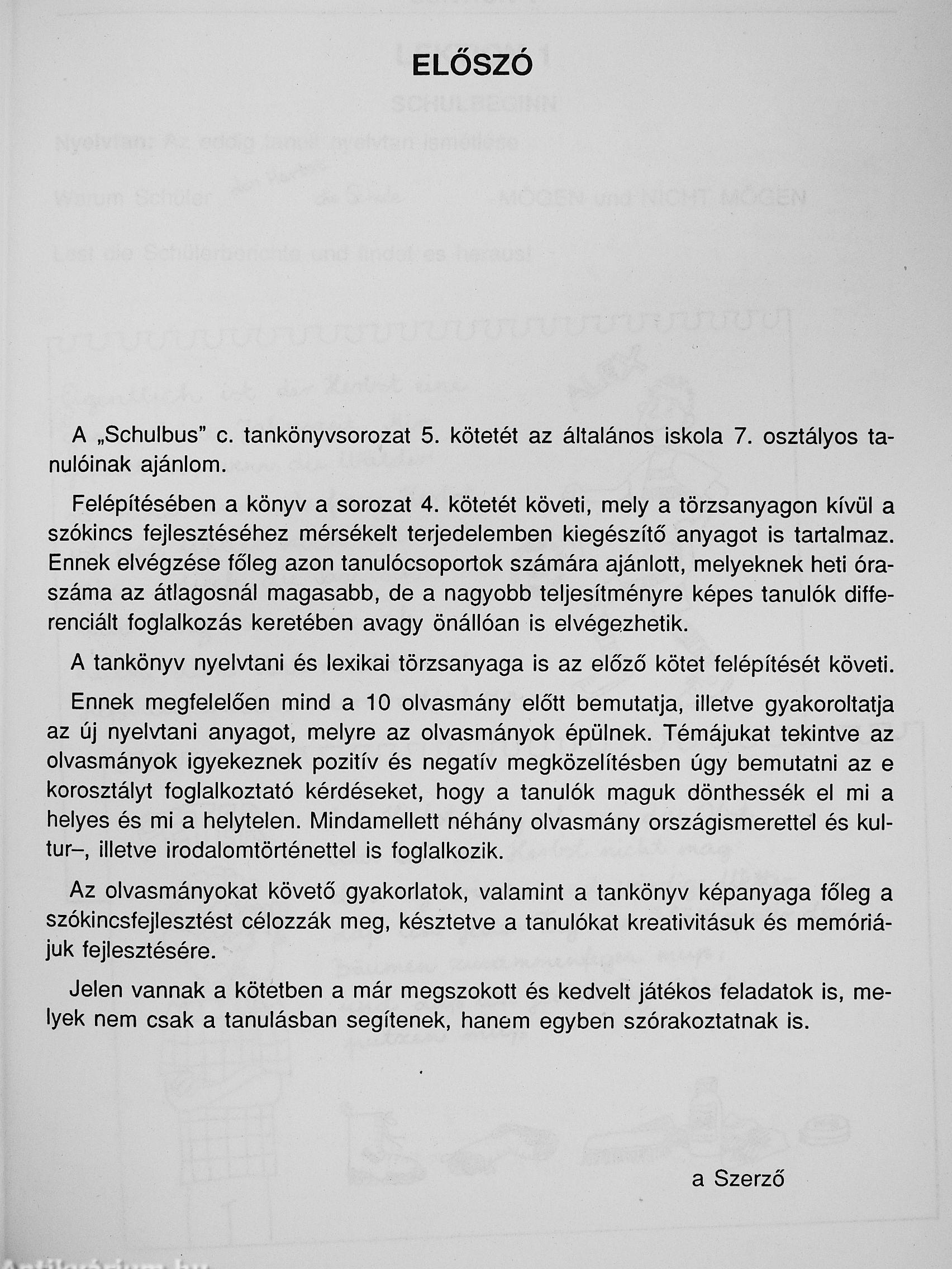 A 8 kötetre tervezett Schulbus tankönyvcsalád a német nyelv oktatását kívánja segíteni az általános iskola alsó és felső tagozatában.