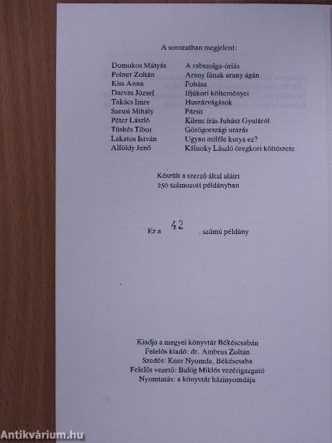| Megjegyzés: | Kovács Sándor Iván szerző által dedikált példány. Számozott kiadás. |