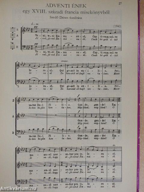 | Adventi ének. Egy XVIII. századi francia misekönyvből. Szedő Dénes fordítása | 27 |