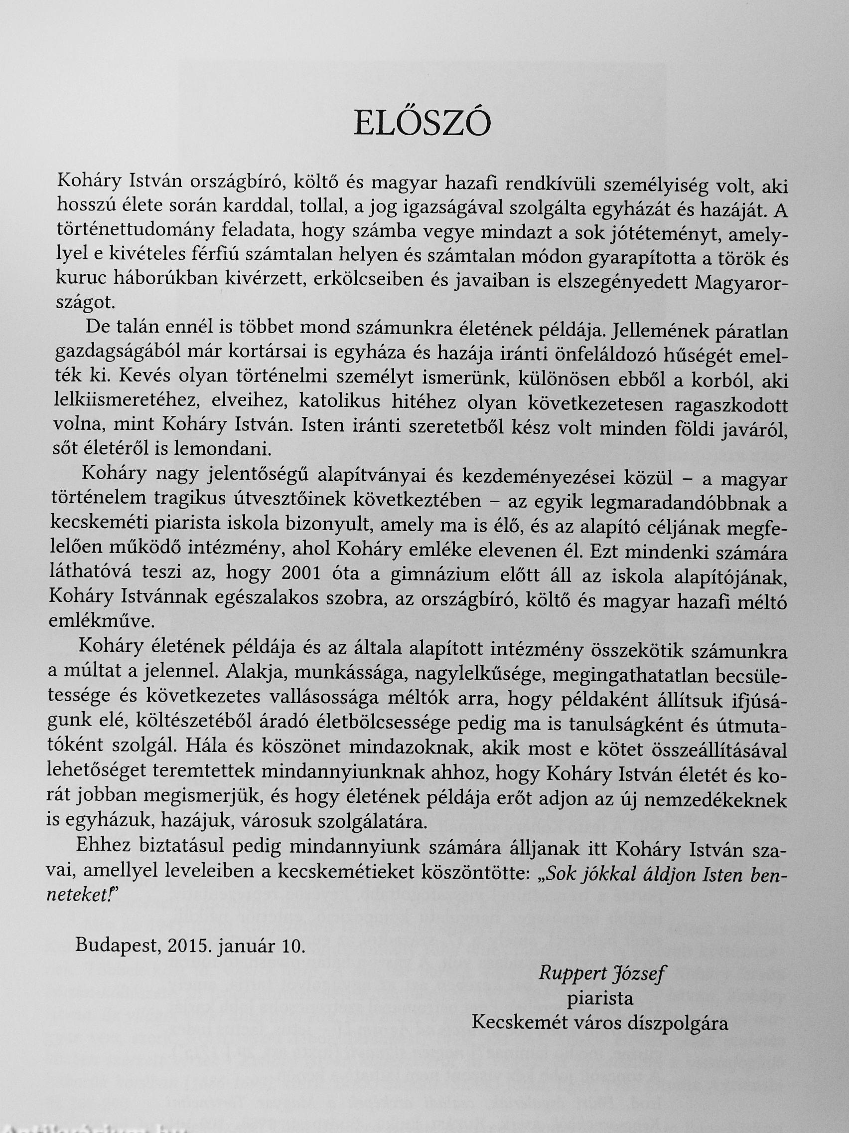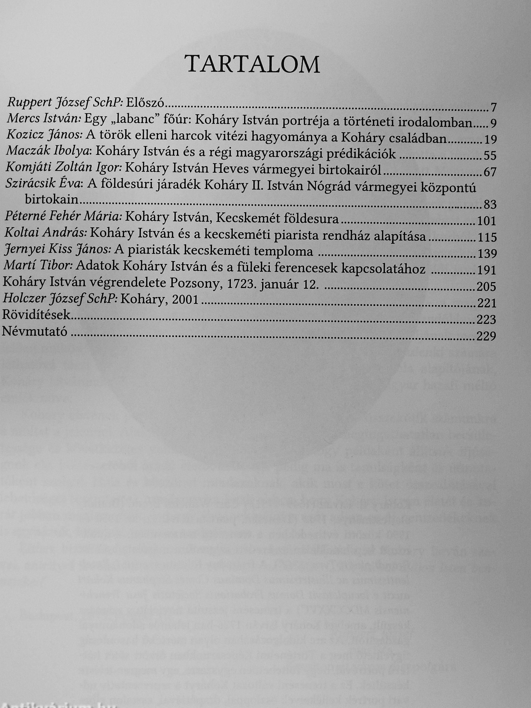 vetkeztében - az egyik legmaradan-dóbbnak a kecskeméti piarista iskola bizonyult, amely 1715 óta élő, és az alapító céljának megfelelően működő intézmény. Fönnállásának háromszázadik évfordulóján kilenc tanulmány, saját végrendelete és portréinak tel- '-jes sorozata mutatják be Koháry Ist-ván gazdag életének egyes oldalait: a ^ katonát, a földesurat, a mecénást és a " patrónust.