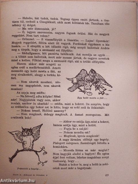 Mármost, hogy miért küldi le a jó Isten a kisgyerekeket? Azért, mert Ő nagyon szereti hallgatni, amint ezek a kisfiúk és lányok nevetgélnek meg sírnak idelent. Szereti hallgatni, amint ezek a gyerekek azt mondják a kiválasztott néninek és bácsinak: Anyja!... Apja!... Nagyon szereti hallgatni azt is, amint ezek a kisfiúk és kislányok esténként szólnak Hozzá. Azt mondják: Én Istenem, jó Istenem, becsukódik már a szemem - De a Tied nyitva, Atyám, amíg alszom, vigyázz reám. - Vigyázz édes szüleimre, meg az én kis testvéremre - Mikor a nap újra felkel, csókolhassuk egymást reggel - hiszen tudjátok az imát! - nahát ezt igen-igen szereti a jó Isten s mikor ti esténként ezt mondjátok, mindig egészen előrehajlik a városok és falvak felé, úgy hallgatja, Valamennyiteknek még a hangját is megismeri külön-külön, s gyakran előfordul, hogy odaszól az angyaloknak, akik körülállják, odaszól: halljátok, ez Péterke volt! Pszt... ez meg Zsuzsi... milyen szépen tudja mondani!...