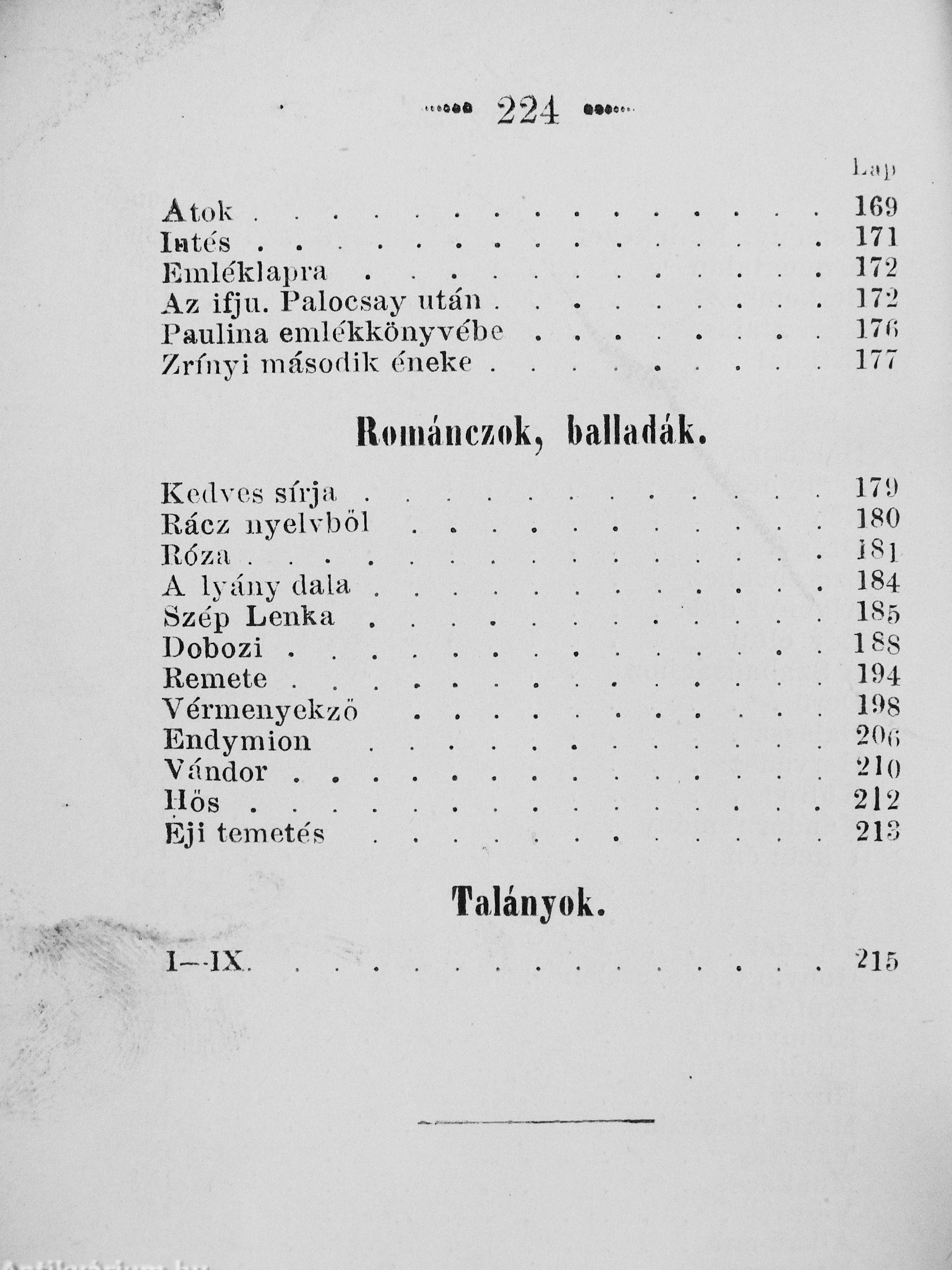 | Megjegyzés: | Negyedik kiadás. A költő fekete-fehér arcképével. Nyomatott Landerer és Heckenastnál, Pesten. |