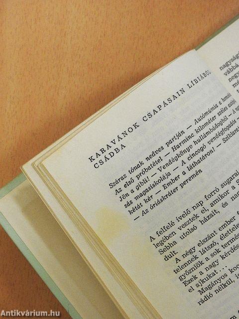 | Nyugtalanító hírek - A bakonyi sertésborda és a sivatagi sakálok - A kalifa benzint vesz - Riadó! Két ember eltűnt a sivatagban! - Dobek újabb benzines üzelme - A túlvilágon reklamációnak nincs helye! | 129 |